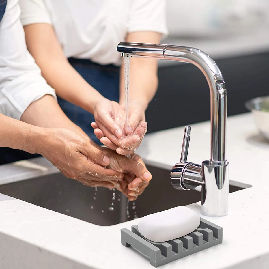 Schluss mit aufgeweichten Seifenresten! Dieses 3er Set Silikon-Seifenschalen löst dein Seifen-Problem endgültig! Jede Schale misst 12x10x1,7 cm und ist aus hochwertigem, lebensmittelechtem Silikon - super sicher und bruchfest! Die erhabenen Drainagestreifen auf der Oberfläche sorgen dafür, dass Wasser super ablaufen kann und deine Seife immer trocken bleibt. So schmilzt sie nicht weg und hält viel länger! Die geneigte Oberfläche mit den praktischen Ablauföffnungen leitet Feuchtigkeit effektiv ab und verhindert Bakterienwachstum. Der Boden hat eine Gitterstruktur aus Silikonstreifen - die Schale rutscht also nicht auf der Spüle weg! Im Set sind sogar 3 Seifensäckchen (9x13 cm) enthalten - damit kannst du Seifenreste super verwerten und reichhaltigen Schaum erzeugen! Perfekt für Badezimmer, Küche oder Gästetoilette. Du kannst damit nicht nur Seife aufbewahren, sondern auch Badebälle, Schwämme oder andere kleine Accessoires. Einfach zu reinigen - einfach zusammenfalten und mit Wasser abspülen oder mit einem feuchten Tuch abwischen. Mit drei Schalen hast du für jeden Raum im Haus die passende Lösung!