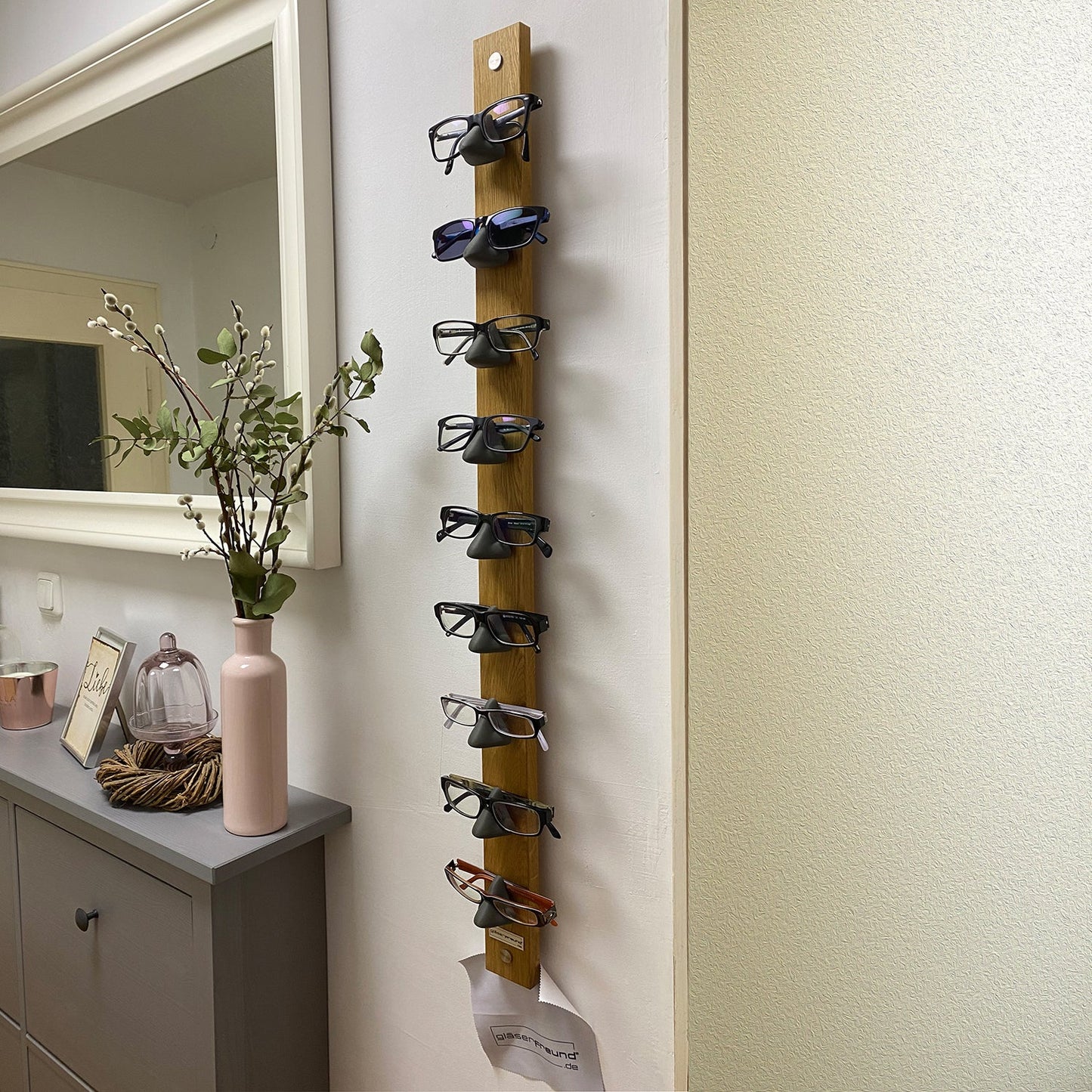 Schluss mit suchen! Dieses 3er-Set Brillenhalter aus nachhaltigem Paulownia-Holz organisiert deine Brillen und Sonnenbrillen perfekt. Mit weichen Gummibändern, die kratzfrei halten. Jedes Regal misst 30,5x3 cm - Platz für mindestens 9 Brillen. Einfache Wandmontage inklusive Zubehör. Das schlanke, moderne Design passt in jeden Raum - ob Flur, Schlafzimmer oder Bad. Umweltfreundlich, langlebig und handgefertigt. Endlich Ordnung für deine Sehhilfen!