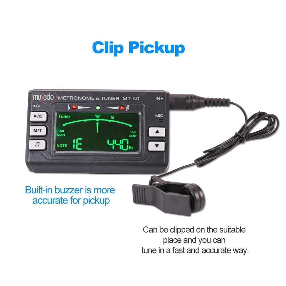Dieses praktische 3-in-1 Gerät ist der perfekte Begleiter für jeden Musiker! Kombiniert einen präzisen Tuner, ein Metronom und einen Tongenerator in einem kompakten Design. Mit 100x65mm passt es in jede Tasche und ist immer griffbereit. Zwei Signalaufnahmemöglichkeiten: integriertes Mikrofon oder per Pickup-Kabel. Die Klammer auf der Rückseite ermöglicht sicheres Aufstellen auf ebenen Flächen. Perfekt zum Stimmen von Gitarre, Bass, Ukulele und Violine. Aus robustem ABS-Material gefertigt, das auch unterwegs hält. Super für Anfänger, die noch am Üben sind, aber auch für erfahrene Musiker, die ein zuverlässiges Tool brauchen. Einfach zu bedienen und genau in der Anzeige. Ob zu Hause, im Proberaum oder auf der Bühne - mit diesem Tuner bist du immer perfekt gestimmt. Ein unverzichtbarer Helfer für jedes Training und jeden Auftritt. Einfach einschalten und losrocken!