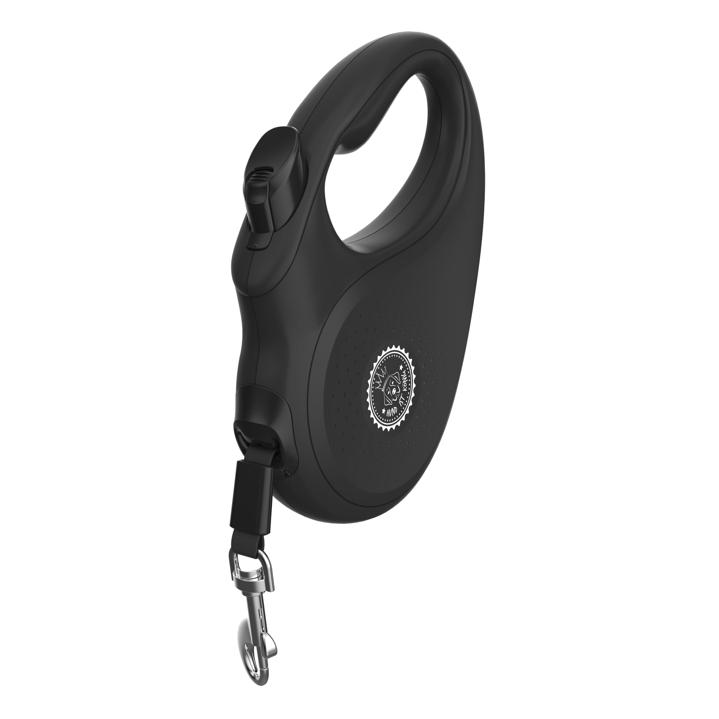 Die Stopp-Funktion sorgt für Sicherheit, und der bequeme Griff liegt super in der Hand. Der Karabiner ist extra stabil und hält sicher. Für Hunde bis 15kg ideal.