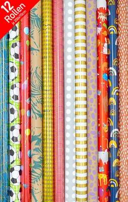Immer perfekt verpackt! Dieses GuKKK Geschenkpapier-Set enthält 4 verschiedene Rollen Geschenkpapier (je 3m x 43cm) und 2 Rollen Band für die komplette Geschenkverpackung. Die hübschen Designs mit Bronzing-Effekt in Punkten, Sternen, Streifen und Geburtstagsmotiven sind für jeden Anlass geeignet. Die angemessene Papierstärke verhindert Einrisse und sorgt für professionelle Ergebnisse. Ob für Weihnachten, Geburtstage, Hochzeiten, Valentinstag, Muttertag oder Kinderfeste - hier findest du das passende Papier. Ideal auch für Tischdekoration, Hintergründe oder Party-Deko. Mit den 12 Metern Geschenkpapier insgesamt kannst du viele Geschenke in verschiedenen Größen verpacken. Die mitgelieferten Bänder machen die Präsentation komplett. Einfach zu handhaben, vielseitig einsetzbar und immer griffbereit - das Must-have für alle, die ihre Geschenke besonders schön verpacken möchten. Qualität, die begeistert!