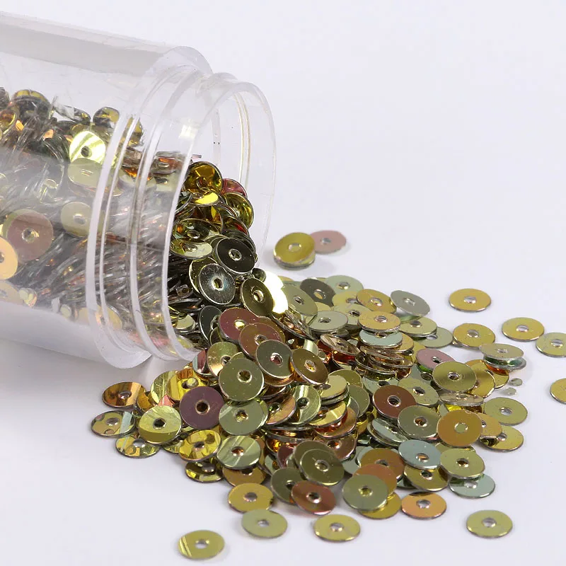 Wow, diese Pailletten bringen richtig Glamour in deine Bastelprojekte! Im 10g Set mit verschiedenen Größen von 3mm bis 6mm, alle aus PVC und super glänzend. In vielen Farben erhältlich - Gold, Silber, Schwarz, Rot, Blau... Jede Paillette hat ein Loch in der Mitte, also einfach auffädeln oder aufkleben. Perfekt zum Verzieren von Kleidung, Taschen, Schuhen oder für Nagelkunst und Scrapbooking. Bring deine Kreationen zum Strahlen! Einfach zu verwenden und machen jedes Projekt gleich viel spezieller. Unendliche Möglichkeiten für kreative Köpfe!