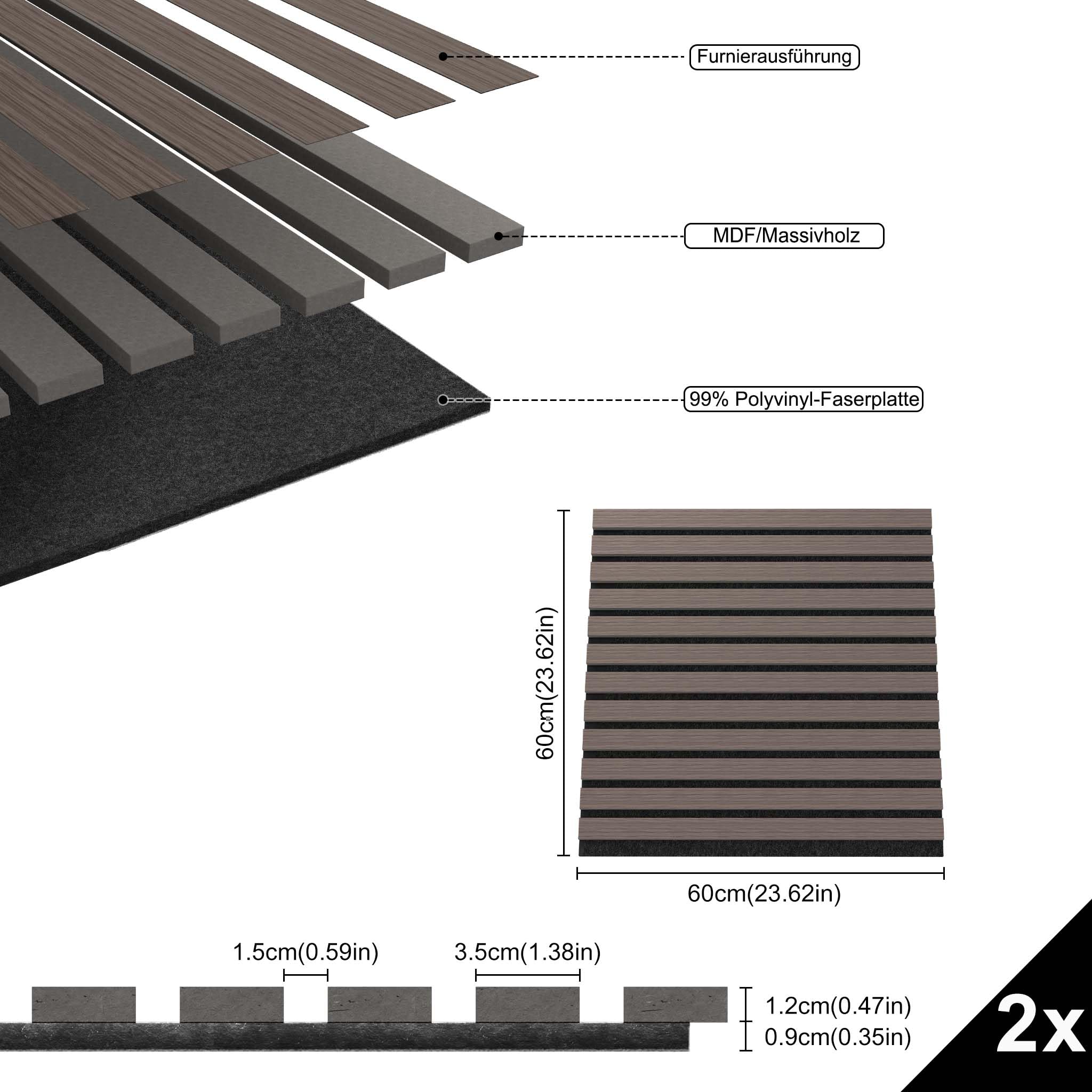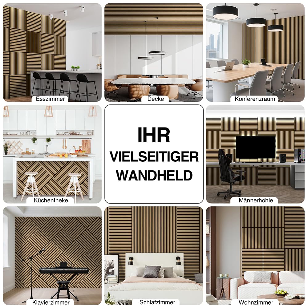 Endlich Ruhe und bessere Akustik in deinen Räumen! Diese modernen Akustikpaneele reduzieren effektiv Hall und störende Geräusche - perfekt für Home-Office, Wohnzimmer oder Schlafzimmer. Jedes Paneel misst 60x60cm und besteht aus 6mm MDF mit 3mm Filzoberfläche. Das flexible Material lässt sich sogar um Ecken und Säulen biegen - ideal für kreative Wandgestaltungen! Einfache Montage: Entweder mit Montagekleber (ohne Bohren) oder mit Schrauben direkt durch den Filz. Erhältlich als 1er, 4er oder 8er Set - je nachdem wie viel Fläche du bedecken möchtest. Die matte Filzoberfläche in Teak-Optik sieht nicht nur super aus, sondern verbessert auch nachweislich die Raumakustik. Perfekt für: Heimkino, Musikzimmer, Büros, Konferenzräume oder laute Kinderzimmer. Mach aus deinen vier Wänden eine Wohlfühloase mit professioneller Akustik - ohne teure Umbauten!