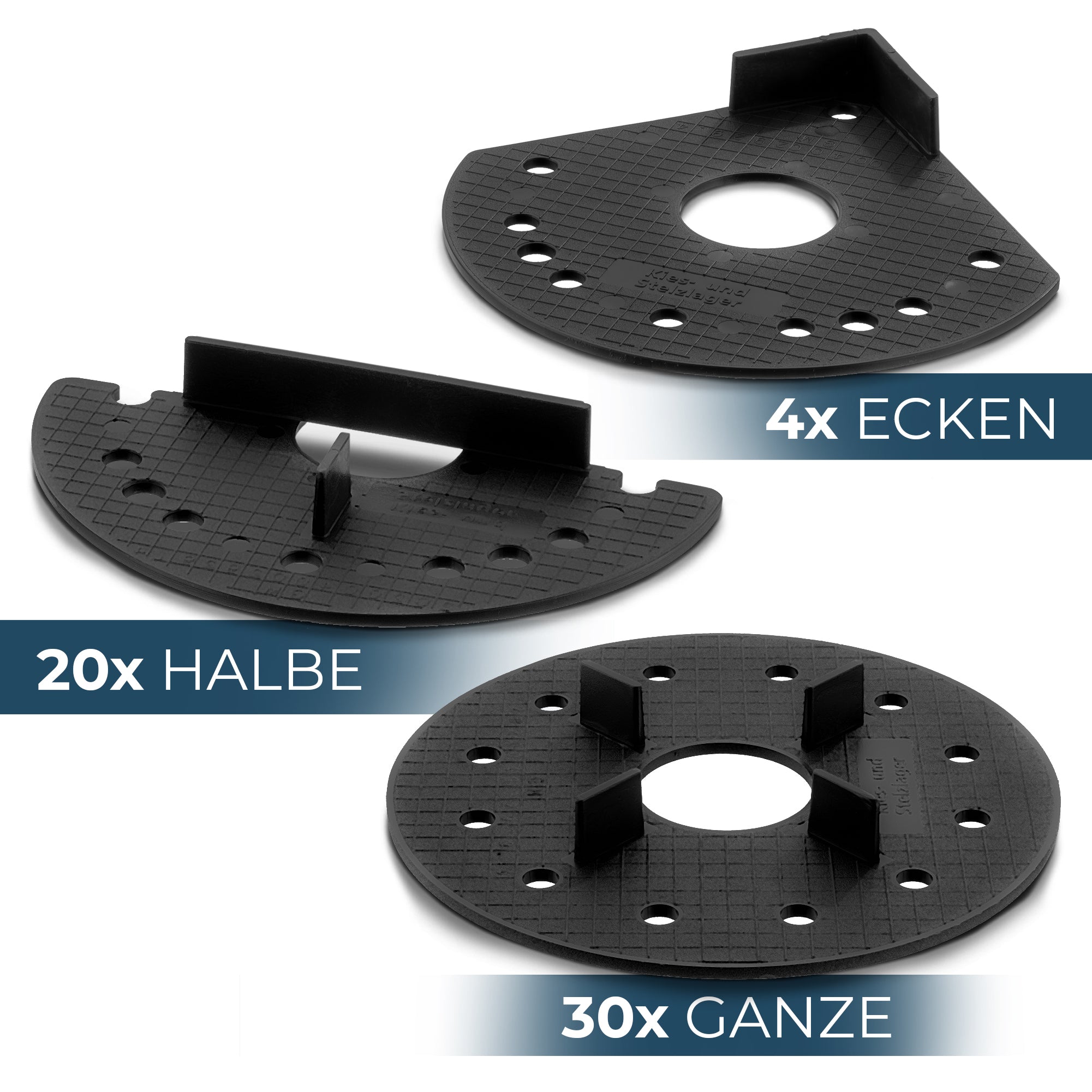 Professionelle Terrassenverlegung war noch nie so einfach! Diese Gummi-Plattenlager aus Deutschland machen dich zum Verlege-Profi. Mit 3mm Fugenstärke und 10mm Höhe für perfekten Plattenabstand. Die große Auflagefläche (113cm²) verhindert Kippen und sorgt für maximale Stabilität. Die genoppte Unterseite dämmt Geräusche und leitet Wasser super ab. Einfach auf den Untergrund legen, Platte drauf - fertig! Viel besser und schneller als alte Mörtelsäckchen. Für Terrassen, Balkone, Gehwege und Flachdächer. Eckstücke einfach mit Messer ausschneiden. Frostsicher durch flexible Trennung von Untergrund. Made in Germany Qualität, auf die du zählen kannst. Mit 100 Stück reicht's für dein ganzes Projekt!