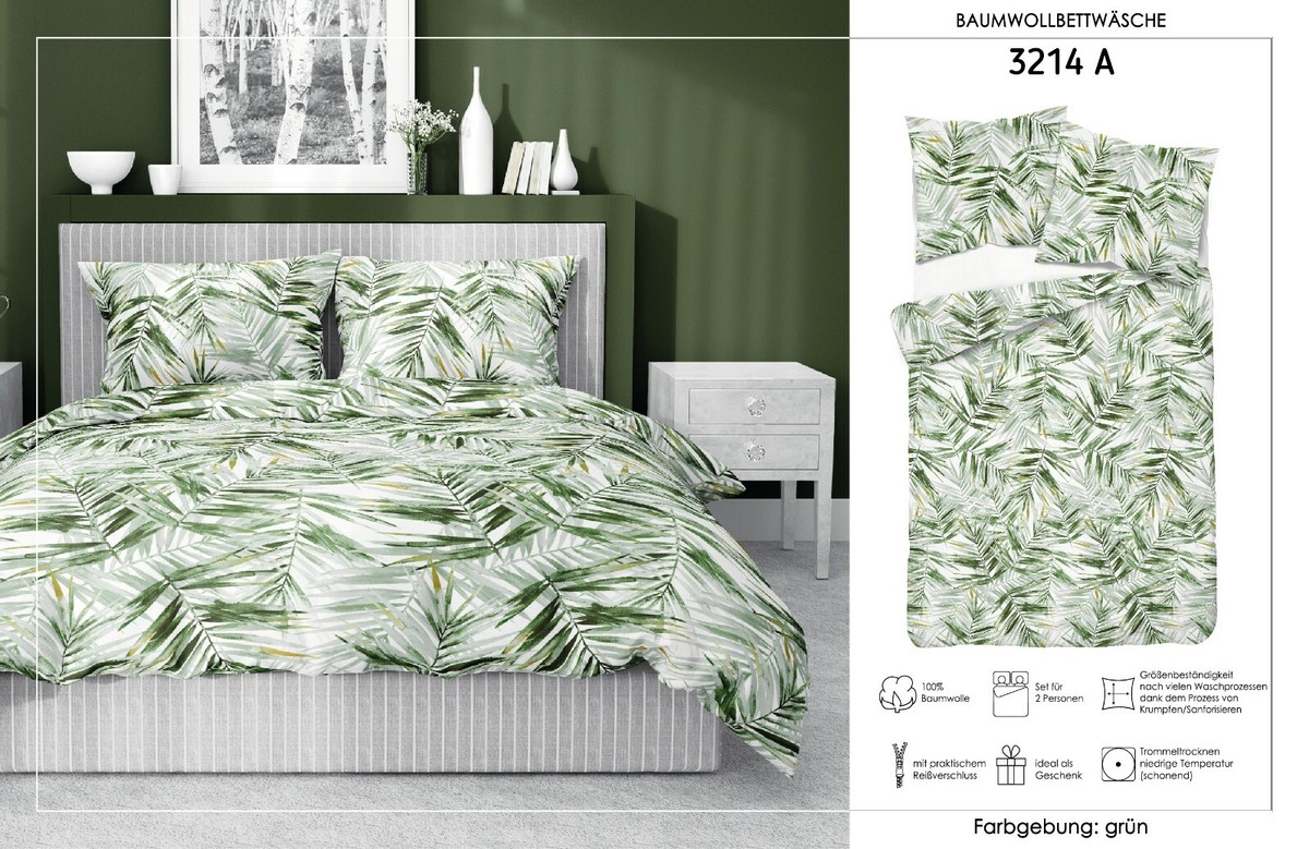 • Ahornblatt Bettwäsche 200x200 3tlg - Weiche Mikrofaser Mit Grün Motiv