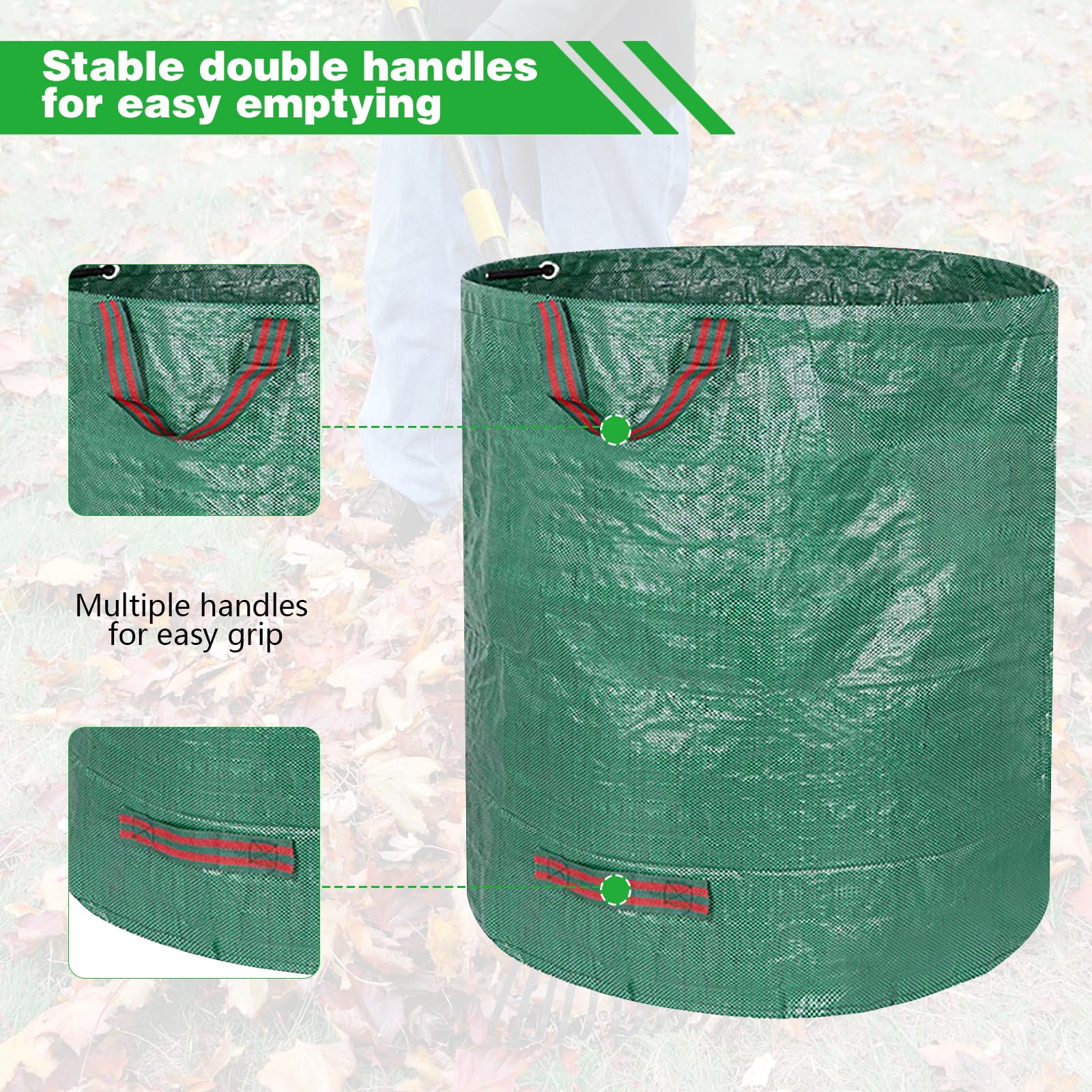 Also Gartenarbeit macht mit diesen NIUQIGE Säcken gleich viel mehr Spaß! Die 3 Säcke mit je 272 Litern Volumen sind ein echter Game-Changer für mich geworden. Das selbststehende Design ist genial - du stellst sie hin, sie bleiben stehen und du kannst bequem Rasenschnitt, Laub und Grünschnitt reinschaufeln. Die 4 Griffe und Trageschlaufen machen das Transportieren super einfach, selbst wenn die Säcke voll sind. Aus robustem Material gefertigt, reißen sie nicht so schnell ein wie billige Plastiksäcke. Was ich besonders gut finde: Wenn sie leer sind, lassen sie sich flach zusammenfalten und brauchen kaum Platz in der Gartenhütte. Die Säcke sind stabil genug, dass sie nicht umkippen und der Inhalt nicht rausfällt. Ob nach dem Rasenmähen, Hecken schneiden oder Laub rechen - mit diesen Säcken wird die Gartenarbeit echt effizienter. Nach der Saison wasch ich sie einfach ab und lagere sie bis zum nächsten Frühjahr. Für Hobbygärtner mit mittelgroßen Gärten absolut perfekt - da hat man immer genug Kapazität und muss nicht ständig zur Kompoststelle fahren. Einfach ne praktische und langlebige Lösung für alle Gartenabfälle!
