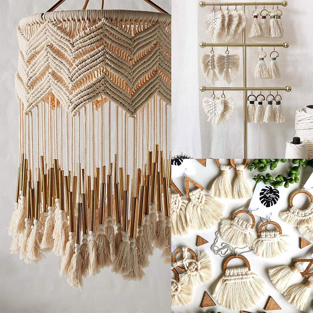 Hey DIY-Fans! Dieses Makramee-Garn-Set von UHAPEER ist perfekt für alle Bastelprojekte! Mit 3mm Stärke und je 200m Länge in drei verschiedenen Farben hast du genug Material für viele kreative Ideen. Die 100% Baumwollkordel ist superweich und lässt sich leicht verarbeiten. Egal ob du Wanddekorationen, Hängepflanzen-Aufhänger, Taschen oder Untersetzer machen willst - mit diesem Set geht alles easy! Perfekt für den Boho-Stil, der gerade total im Trend liegt. Auch für Anfänger geeignet - probiere einfach mal verschiedene Knoten aus! Das Set ist auch ein super Geschenk für kreative Freunde oder Familienmitglieder. Also, wenn du Lust hast, dein Zuhause mit selbstgemachten Kunstwerken zu verschönern, ist dieses Makramee-Garn genau das Richtige für dich. Lass deiner Kreativität freien Lauf!