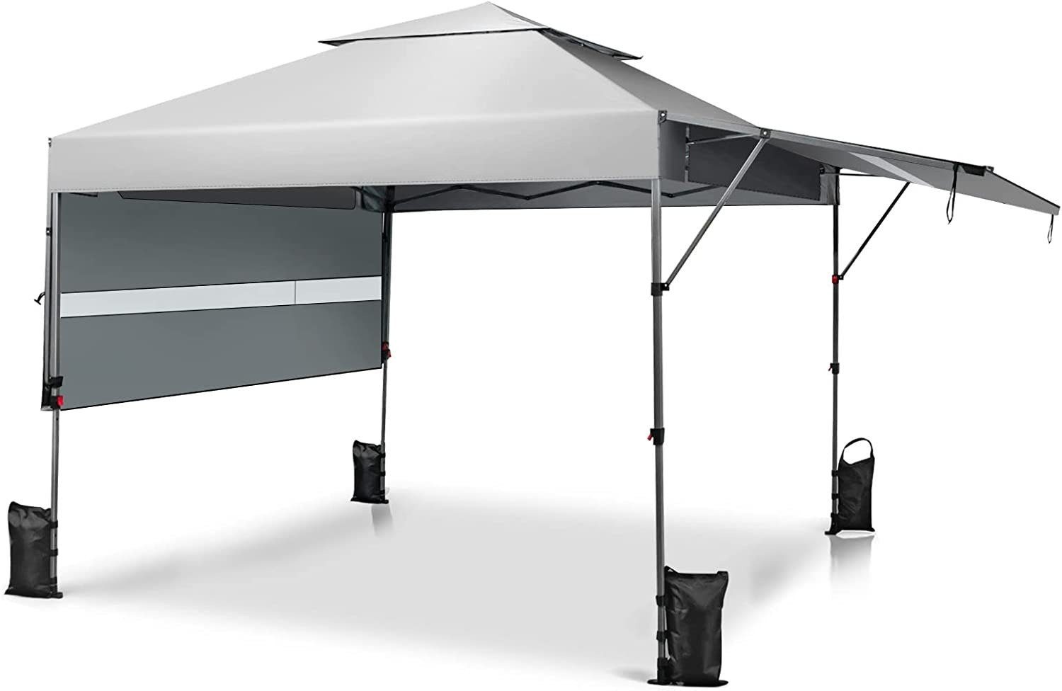 Perfekter Schatten für deine nächste Gartenparty! Dieser COSTWAY Pavillon ist 3x4,5 Meter groß und bietet Platz für 10-12 Personen. Das besondere: Er hat ein höheres Dach mit 8 Entwässerungslöchern - da sammelt sich kein Wasser und bei Regen läuft alles einfach ab. Das Oxford-Gewebe ist reißfest und wasserabweisend. Drei verschiedene Höhen (188cm, 198cm, 208cm) kannst du einstellen, je nachdem was du brauchst. Der Aufbau ist super einfach: Pop-up-System, kein Werkzeug nötig! Ein sicherer Daumenknopf verriegelt den Rahmen. Für extra Stabilität gibt's 4 Windseile und 8 Bodenheringe. Nach der Party klappst du ihn einfach zusammen und packst ihn in die praktische Rolltasche - die hat sogar Räder! Ob Geburtstagsfeier, Hochzeit oder einfach nur ein gemütlicher Tag im Garten - mit diesem Pavillon bist du perfekt vor Sonne und leichtem Regen geschützt. 23 kg Gewicht machen ihn stabil ohne zu schwer zu sein.