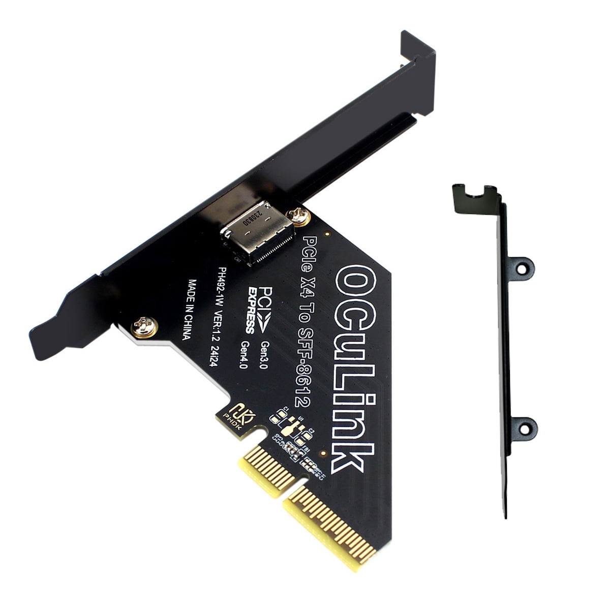 Die Anschlüsse sind übersichtlich: Ein OCuLink SFF-8612 Port und ein PCI Express Anschluss. Die Standardlänge und Low-Profile-Halterung machen die Installation einfach. So integrierst du problemlos PCI-E Komponenten in Systeme, die OCuLink benötigen - ohne Kompromisse bei Geschwindigkeit oder Stabilität.