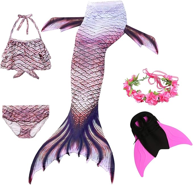 Meerjungfrauenflosse Set Für Mädchen 4-13 Jahre - Bikini & Monoflosse Zum Schwimmen