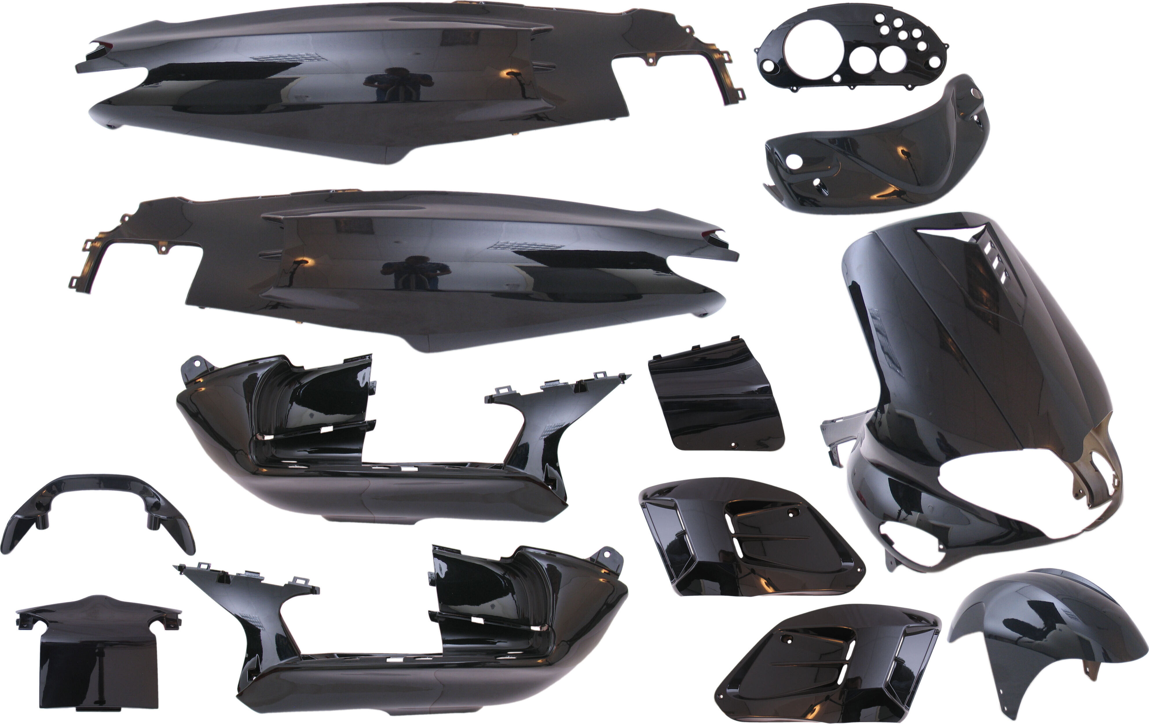 Dieses Verkleidungsset für den Speedfight 4 ist genau das Richtige wenn deine Rollerverkleidung Schäden hat oder du einfach einen neuen Look willst! 14-teilig, in mattschwarz - sieht richtig sportlich aus. Komplett-Set, also alles dabei was du brauchst für einen kompletten Wechsel. Einfach zu montieren, passt perfekt für den Speedfight 4. Hochwertige Verarbeitung, hält auch bei Wind und Wetter. Ob nach einem Sturz, bei Verschleiß oder einfach für ein frisches Aussehen - mit diesem Set macht dein Roller wieder was her! Einfach alte Verkleidung ab, neue drauf und dein Roller sieht aus wie neu! Perfekt für alle die ihren Speedfight 4 lieben und ihm was Gutes tun wollen.