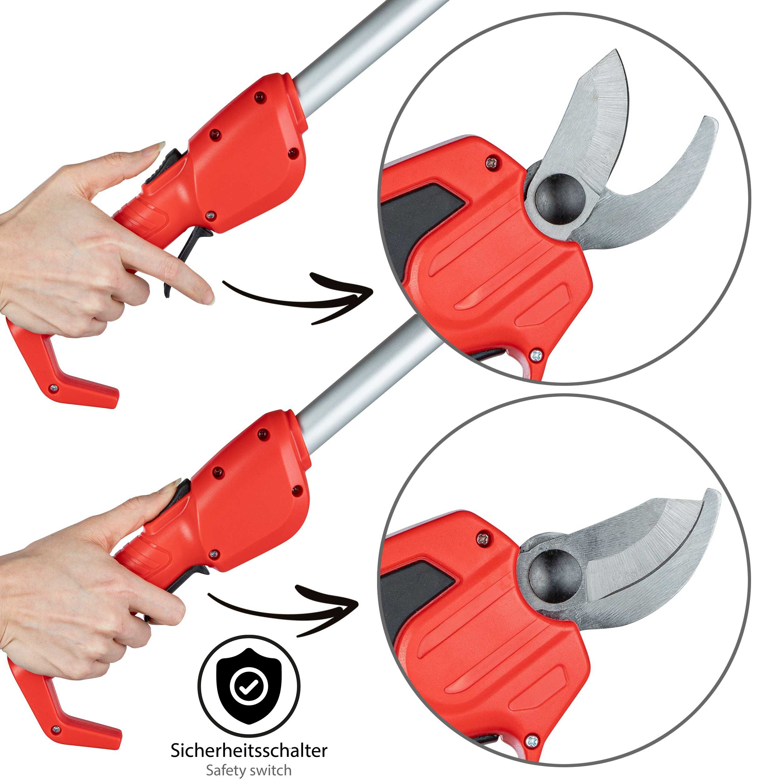 Nie wieder auf wackelige Leitern steigen! Diese Kebtek Teleskopstange verlängert deine Reichweite beim Gartenschnitt von 4,2 auf satte 8,2 Fuß (ca. 2,5 Meter). Die 3-Segment-Konstruktion aus robustem Aluminium ist superleicht und doch stabil. Mit dem Flip-Lock-System stellst du die gewünschte Länge blitzschnell ein. Der verstellbare Winkel ermöglicht dir, auch schwer erreichbare Äste bequem vom Boden aus zu schneiden. Der rutschfeste Griff gibt dir auch bei nassen Händen sicheren Halt. Kompatibel mit Kebtek B05532 und B05540 Akku-Gartenscheren (separat erhältlich). Perfekt für hohe Bäume, dichte Sträucher oder schwer zugängliche Ecken im Garten. Sicherer und effizienter als jede Leiter - dein Rücken wird's dir danken! Ideal für alle Gartenarbeiten, bei denen du sonst mit der Leiter hantieren müsstest.