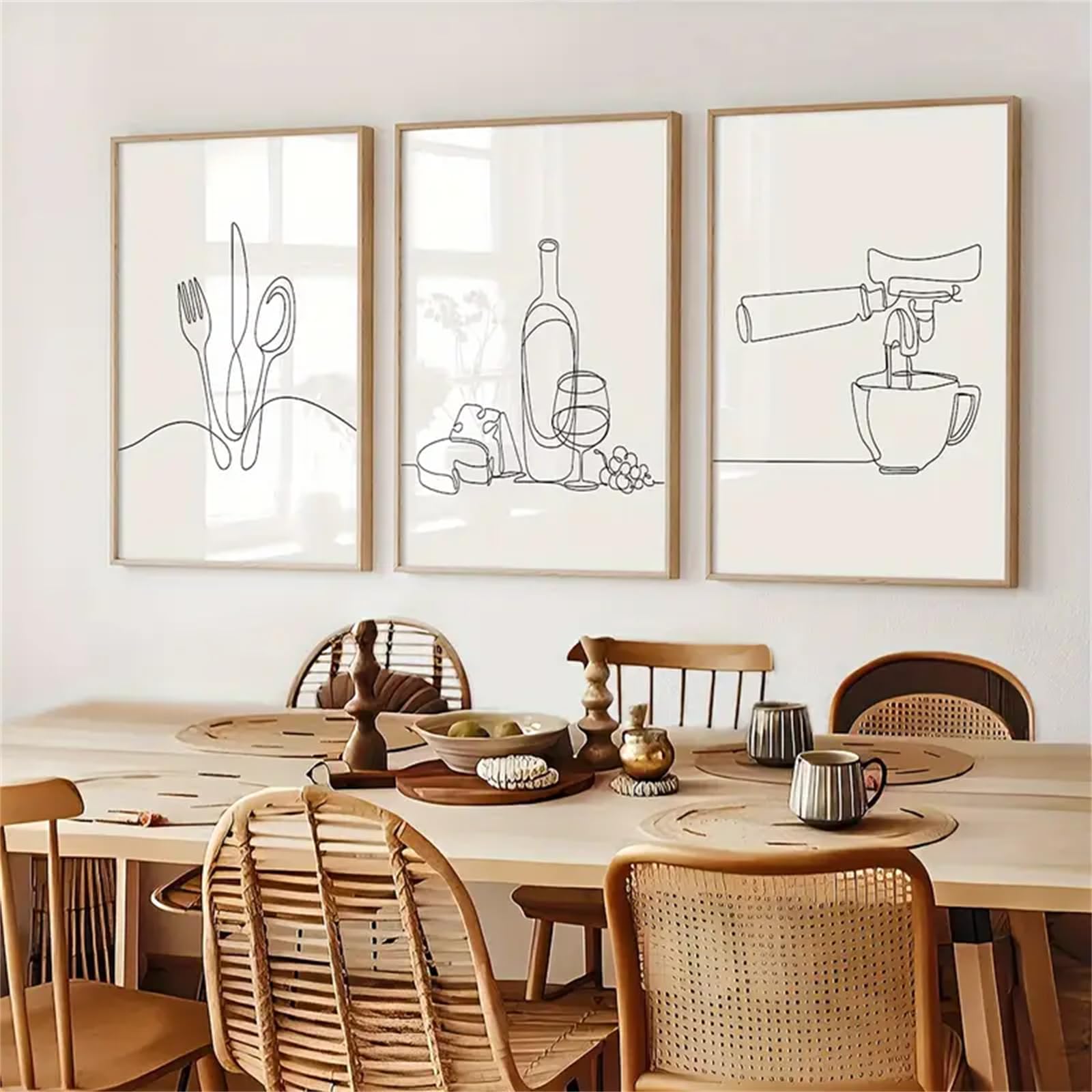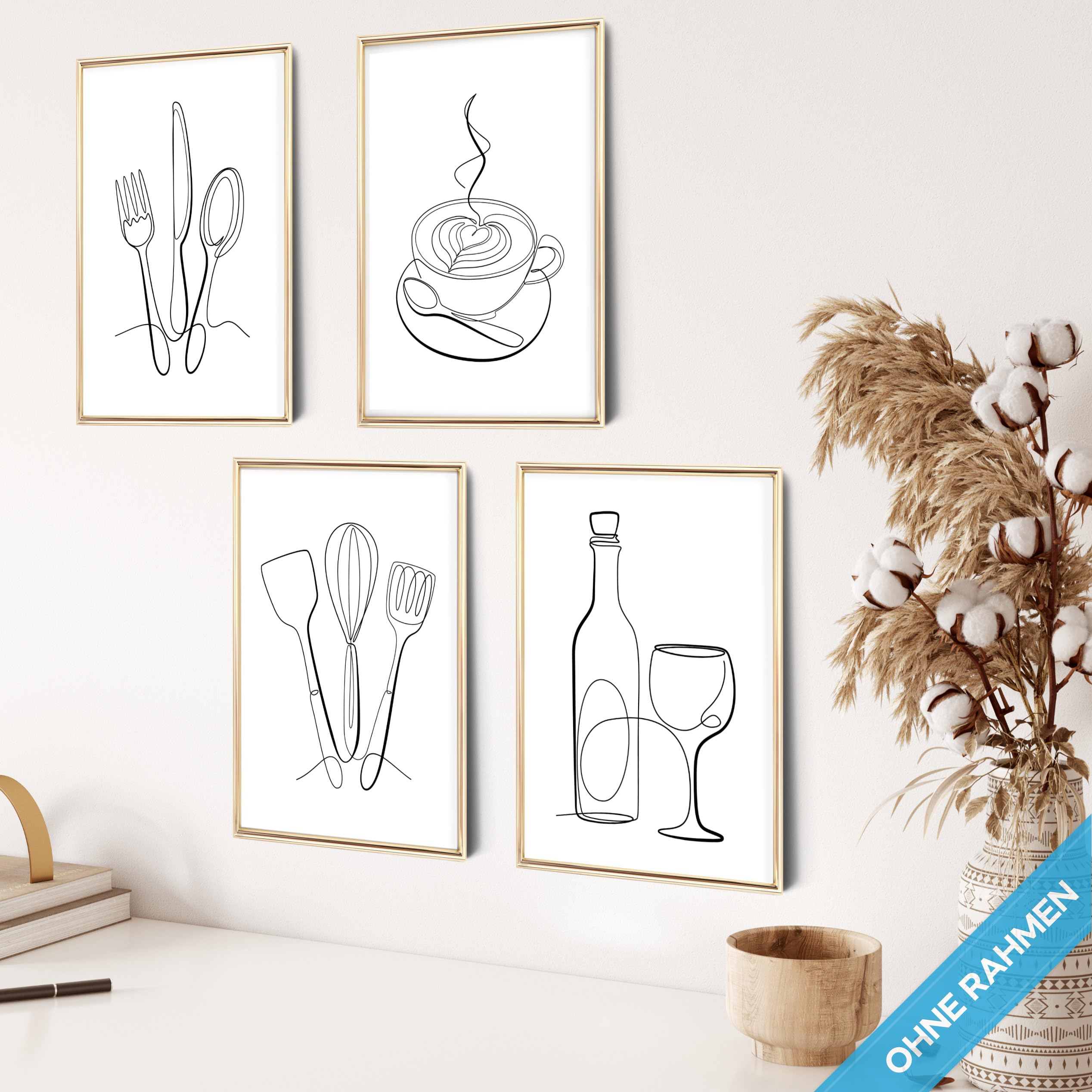 LAVEMA Wein Poster Set A4 - 4-teilige Schwarz-Weiß Wanddekoration Für Küche & Esszimmer