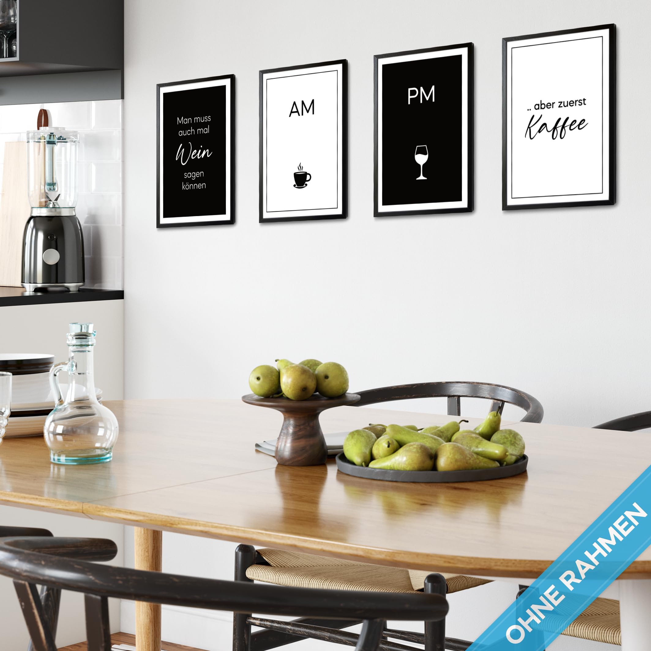 Bring Wein-Genuss an deine Wände! Dieses elegante 4er-Poster-Set von LAVEMA verwandelt Küche und Esszimmer in eine stilvolle Weinbar. Die schwarz-weißen Motive mit Weinflaschen und lustigen Sprüchen wie 'Save Water Drink Wine' sorgen für coole Atmosphäre. Gedruckt auf hochwertigem Premium-Papier in Deutschland. DIN A4 Format (21x30cm) - perfekt für Bilderwände oder als Einzelstück. Ohne Rahmen geliefert, du kannst sie flexibel arrangieren. Super Geschenk für Weinliebhaber, zum Einzug oder für alle, die gutes Essen und Trinken lieben. Hol dir den Wein-Genuss auch optisch nach Hause!
