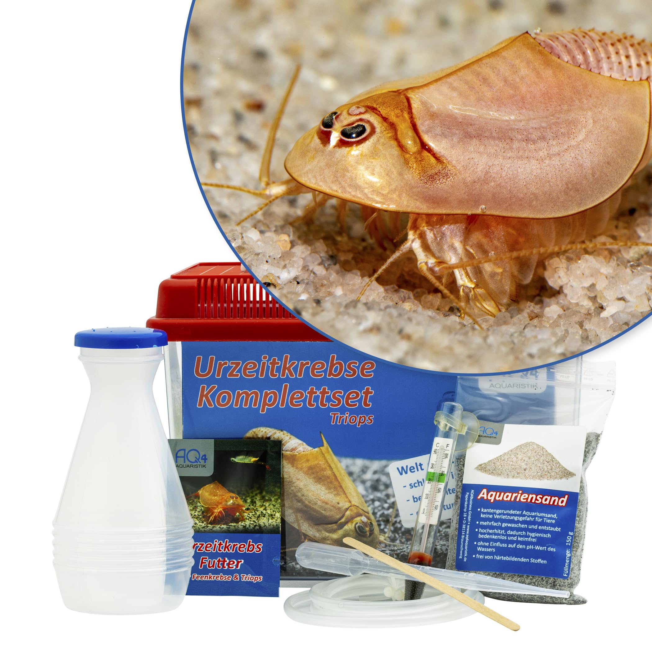 Wow, dieses Triops-Zuchtset ist perfekt für alle Naturbegeisterten! Da ist wirklich alles dabei, was du brauchst: Ein 4,5-Liter-Becken, 100 Albino-Triops-Eier, Sand als Bodengrund und verschiedene Futtersorten. Sogar Pipetten, Schlauch und Thermometer sind im Lieferumfang - also wirklich komplett! Die detaillierte Anleitung per QR-Code erklärt dir Schritt für Schritt, wie du die faszinierenden Urzeitkrebse aufziehst. Du brauchst nur noch geeignetes Wasser - destilliertes Wasser, Regenwasser oder Osmosewasser tun's. Stell dir vor, wie spannend es ist, diese urtümlichen Lebewesen beim Schlüpfen und Wachsen zu beobachten! Das Futter-Paket ist richtig durchdacht: Staubfutter für die Kleinen, Jungtierfutter und Hauptfutter für die Erwachsenen. Sogar entkapselte Artemia-Eier als Proteinquelle sind dabei. Ein super Einstieg in die Welt der Triops-Zucht - sowohl für Kinder als auch für Erwachsene. Einfach aufstellen und die faszinierende Entwicklung beobachten!