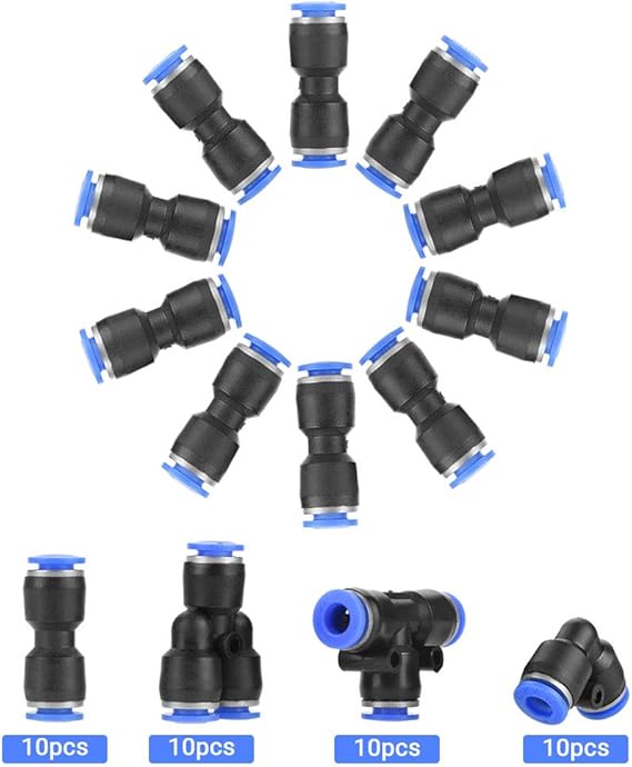 Alles dabei für deine Pneumatik-Projekte! 60 Steckverbinder in einem Set - für Schläuche mit 4, 6 und 8 mm Durchmesser. Enthalten sind gerade, Winkel-, T- und Verteiler-Anschlüsse. Einfach Push-in - drücken und fertig, kein Werkzeug nötig. Aus robustem PBT-Material, hält hohem Druck stand und verformt sich nicht. Perfekt für Werkstatt, Automobilbereich oder Industrie. Die ovale Form liegt super in der Hand, kein Verkrampfen mehr. Kompatibel mit PE, Nylon und PU-Schläuchen. Ob Maschinenbau, Verpackung oder Elektronik - diese Verbinder machen jede Installation einfach. Alles sicher verpackt und sortiert. Kein Suchen, kein Nachkaufen - alles da was du brauchst. Mach deine Luftleitungen fit für den Einsatz!