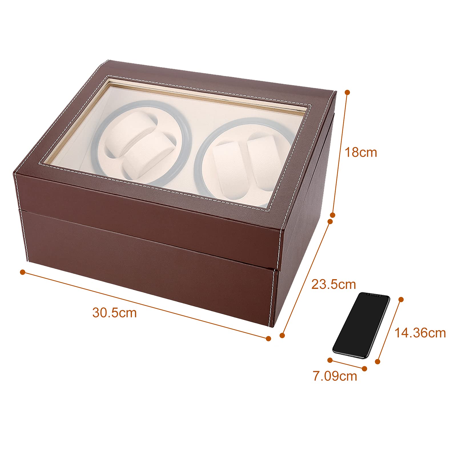 Du besitzt eine oder mehrere Automatikuhren? Dann kennst du das Problem: Stehen sie zu lange, gehen sie nach. Dieses Uhrenbeweger-Set löst das Problem elegant! Mit 4 rotierenden und 6 statischen Plätzen hast du genug Platz für deine gesamte Sammlung. Der Motor ist super leise (<5dB) und dreht sich automatisch im Wechsel, um die Uhren aufgezogen zu halten. Die rote Holzoptik sieht edel aus und schützt deine wertvollen Uhren vor Staub und Kratzern. Einfach anschließen, Uhren reinlegen und sich freuen, dass sie immer bereit sind. Perfekt für echte Uhren-Liebhaber!