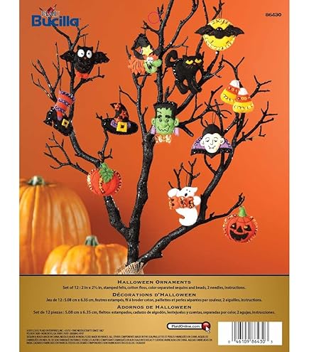 Bastelfreunde, aufgepasst! Dieses Bucilla Filz-Set macht Halloween noch schöner. Mit 4 niedlichen Motiven: Geist, Eule, Kürbis und schwarze Katze. Alles dabei - geprägter Filz, Stickgarn, Pailletten, Perlen und Nadeln. Einfach lossticken, auch für Anfänger geeignet. Die Motive sind schon vorgeprägt, also kein kompliziertes Abpausen nötig. Perfekt für gemütliche Herbstabende auf dem Sofa. Die fertigen Ornamente sehen super an Fenstern, Türen oder als Mobile aus. Bucilla ist seit über 150 Jahren bekannt für Qualität - da machst du nichts falsch. Auch ein tolles Geschenk für kreative Freunde. Einfach auspacken und loslegen - deine persönliche Halloween-Deko entsteht!