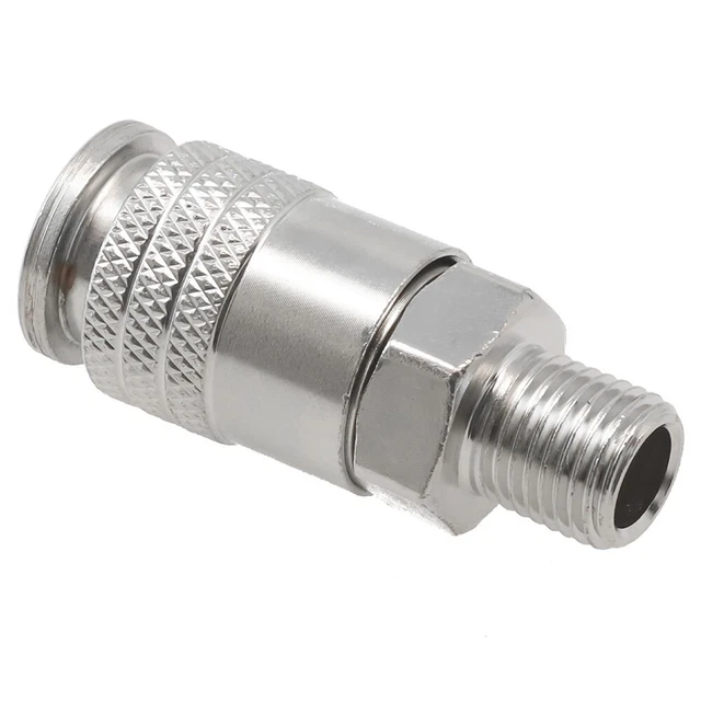 Pneumatik-Arbeit made easy! Diese robuste Schnellkupplung im EU-Standard macht das Anschließen von Druckluft-Werkzeugen zum Kinderspiel. Mit G1/4 Außengewinde (12,5mm) passt an die meisten Kompressoren. Aus massivem Metall gefertigt - hält auch bei intensivem Gebrauch. Gesamtlänge: 53mm, Gewicht: 67g. Einfach reinschieben bis es klickt - fertig! Perfekt für Werkstatt, Garage oder Hobbybereich. Spart Zeit und Nerven beim Werkzeugwechsel. Dein neuer bester Freund für alle Pneumatik-Projekte!