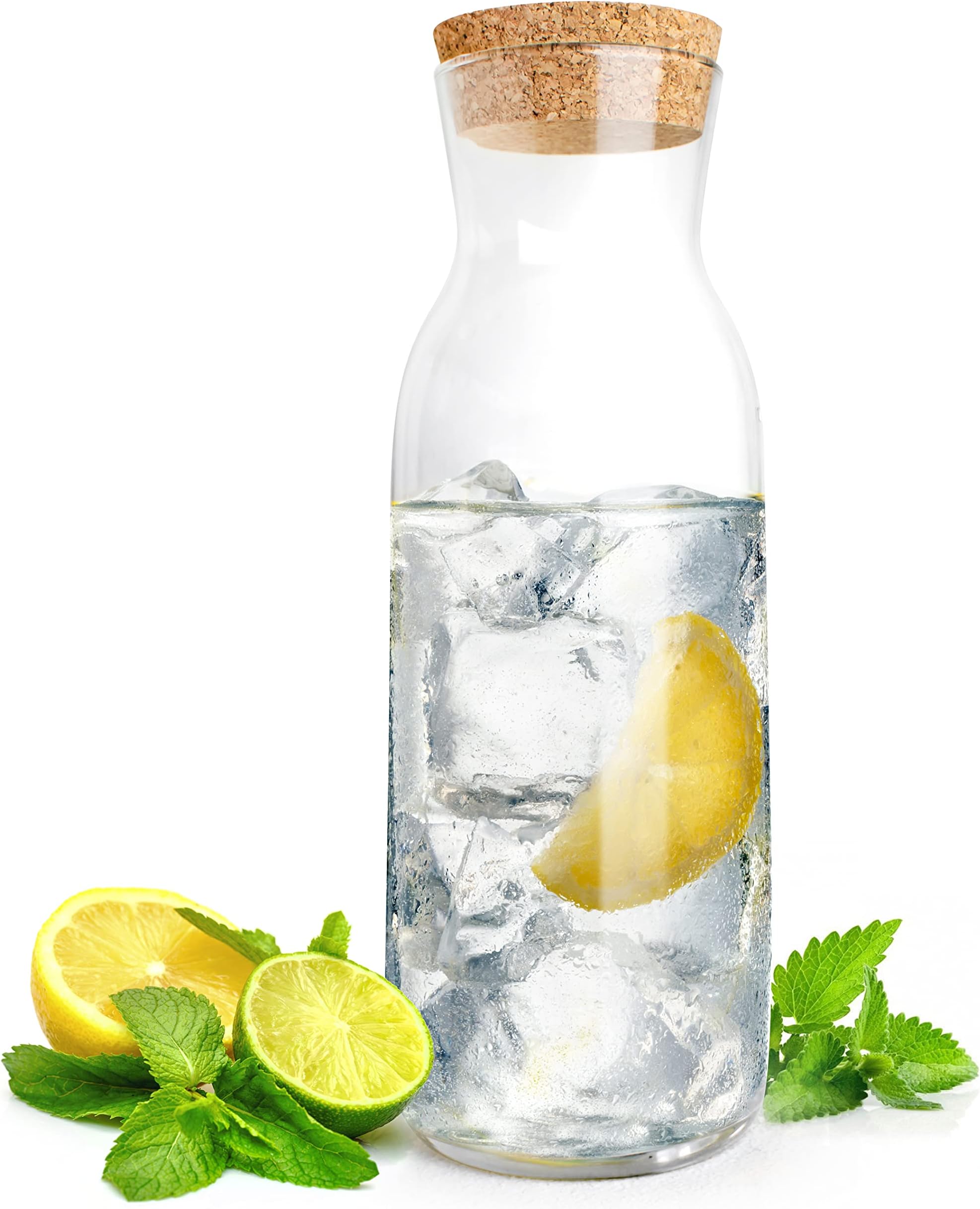 Diese Glaskaraffen sind einfach nur schön! Mit 1,2 Liter Fassungsvermögen sind sie perfekt für Wasser, Säfte, selbstgemachte Limonaden oder sogar als stylische Blumenvase. Der schmale Hals sieht nicht nur elegant aus, sondern verhindert auch das Verschütten beim Einschenken. Die Korkdeckel passen perfekt und halten Kohlensäure im Wasser - ideal für Sprudelwasser! Jede Karaffe ist 27,8 cm hoch und hat 9 cm Durchmesser, also schlank genug für den Kühlschrank. Das dickwandige Glas fühlt sich wertig an und die Karaffen sind spülmaschinenfest (obwohl Handwäsche empfohlen wird für längere Haltbarkeit). Das 4er-Set ist super für Familien, Partys oder wenn du verschiedene Getränke parallel anbieten willst. Ob auf dem Esstisch, beim Brunch oder als Deko-Element - diese Karaffen machen immer was her. Die transparente Optik lässt die Getränke richtig schön aussehen und der Korkdeckel verleiht einen natürlichen, modernen Touch. Einfach ein zeitloses Design das in jede Küche passt!