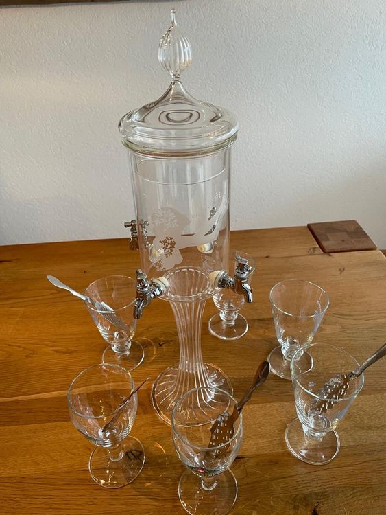 Für echte Absinth-Liebhaber! Dieser traditionelle Brunnen ist die exakte Nachbildung der berühmten Originale aus dem 19. Jahrhundert. Mit 4 funktionierenden Hähnen kannst du gleich mehrere Gläser bedienen - perfekt für Partys! 60cm hoch, mit 2 Liter Wasser-Kapazität. Aus Messing und mundgeblasenem Glas - komplett handgefertigt. Warum überhaupt ein Brunnen? Ganz einfach: Das langsame Tröpfeln des Wassers löst nicht nur den Zucker, sondern setzt auch die ätherischen Öle frei - so entfaltet der Absinth sein volles Aroma. Einfach montieren: Basis mit Schale verbinden, Deckel drauf - fertig. Wird sicher verpackt geliefert. Ein absolutes Must-Have für jedes Absinth-Ritual! Damit wird jede Party zum besonderen Erlebnis. Einfach befüllen, Wasser laufen lassen und den magischen Moment genießen!
