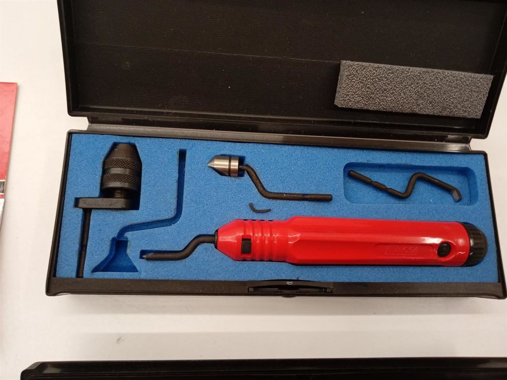 Professionelles Entgrater-Set von Noga! Mit 4 farbcodierten Haltern und auswechselbaren Klingen hast du für jeden Entgrat-Einsatz das passende Werkzeug zur Hand. Praktischer Clip zum Anstecken - immer griffbereit!🔧 4 verschiedene Entgrater🔄 Auswechselbare Klingen🎨 Farbcodierung🔗 Mit Ansteck-Clip🏭 Für MetallbearbeitungDie Halter sind bereits mit Klingen bestückt und ready-to-use. Einfach das passende Werkzeug auswählen und schon kann's losgehen! Perfekt für Werkstatt, Hobbybereich oder industrielle Anwendungen. Noga Qualität garantiert präzise Ergebnisse und lange Haltbarkeit. Die Klingen lassen sich einfach wechseln, wenn sie stumpf werden - wirtschaftlich und praktisch! Ob für Feinarbeiten oder größere Projekte: Dieses Set gibt dir die Flexibilität, die du brauchst. Ein Must-have für jeden, der mit Metall arbeitet und saubere Kanten liebt!