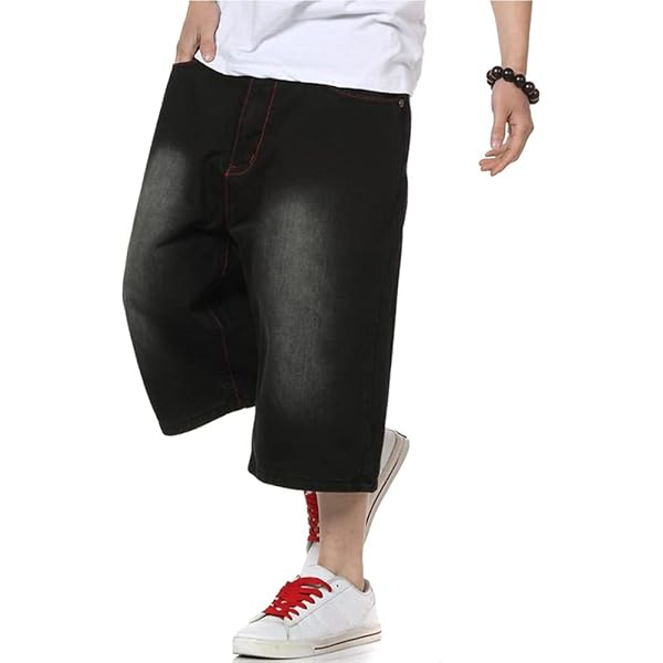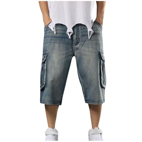 Herren Baggy Jeans 3/4 Hose - Loose Denim Pants Mit Kordelzug Streetwear