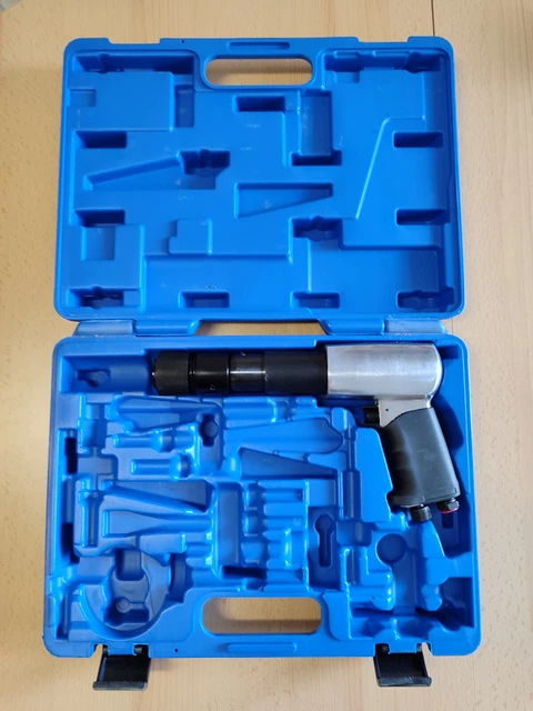 Alter, das ist 'n echter Pro! Der pneumatische Hammer TECHNIC AT-2010RSG kommt mit 4 verschiedenen Meißeln und ist 'n Allrounder in der Werkstatt. Mit runder Meißelaufnahme - die Meißel drehen sich beim Schlagen mit! Hochwertige Stahlkonstruktion von Lauf und Kolben für extreme Langlebigkeit. Aluminiumgehäuse mit Gummigriff - leicht und angenehm in der Hand. Eingebaute Leistungsregulierung gibt dir die volle Kontrolle. Perfekt für Karosseriearbeiten - entfernt Rost, Zunder, alte Farben und mehr. Die verschiedenen Meißel sind ideal zum Stechen, Brechen, Zerspanen... Technische Daten: 150 mm lang, Arbeitsdruck 6,2 bar, Luftbedarf 140 l/min, 4500 Schläge pro Minute. Luftanschluss 1/4 Zoll, inklusive Schnellkupplungsstecker. Ob in der Kfz-Werkstatt oder beim Heimwerken - mit dem Hammer kriegst du alles weg! Einfach unverwüstlich!