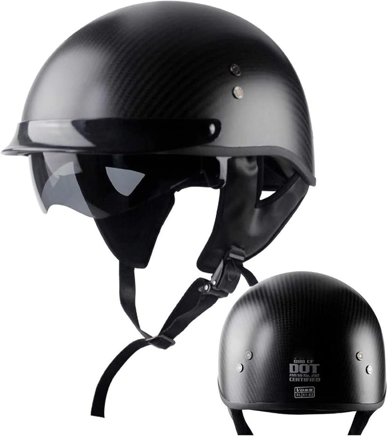 Boah, dieser Carbon-Halbhelm ist einfach der Hammer! Mit nur 1080 Gramm Gewicht spürst du ihn kaum auf dem Kopf, aber die Sicherheit stimmt: ECE 22.06 zertifiziert, also absolut verkehrstauglich in Europa. Die Kohlefaser-Schale ist super leicht aber extrem stabil - das gibt Sicherheit ohne schwer zu sein. Die integrierte Sonnenblende aus PC-Material ist beschlagfrei und schützt super vor der Sonne, ohne dass du eine extra Sonnenbrille brauchst. Das Innenfutter ist herausnehmbar und waschbar - super praktisch bei Schweiß oder nach langen Fahrten. Der verstellbare Kinnriemen mit Schnellverschluss lässt sich easy anpassen und sitzt bombenfest. Das aerodynamische Belüftungssystem sorgt für angenehme Kühlung auch bei heißen Temperaturen. Perfekt für Cruiser, Roller oder einfach für entspannte Stadtfahrten. Es gibt verschiedene Größen von M (55-56cm) bis XXL (61-62cm) - einfach vorher den Kopfumfang messen! Kompakt genug um ihn im Motorradkoffer oder Rucksack zu verstauen. Sieht dazu noch richtig stylisch aus im Retro-Design. Ob Mann oder Frau - dieser Jethelm passt zu jedem und macht jede Fahrt komfortabler und sicherer!