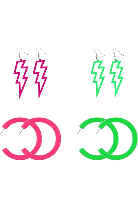Back to the 80s! Diese knalligen Neon-Stern-Ohrringe bringen richtig Farbe in dein Leben. Im Set bekommst du 4 verschiedene Paare in grellem Grün, Orange, Pink und Gelb - perfekt zum Kombinieren und Ausprobieren.