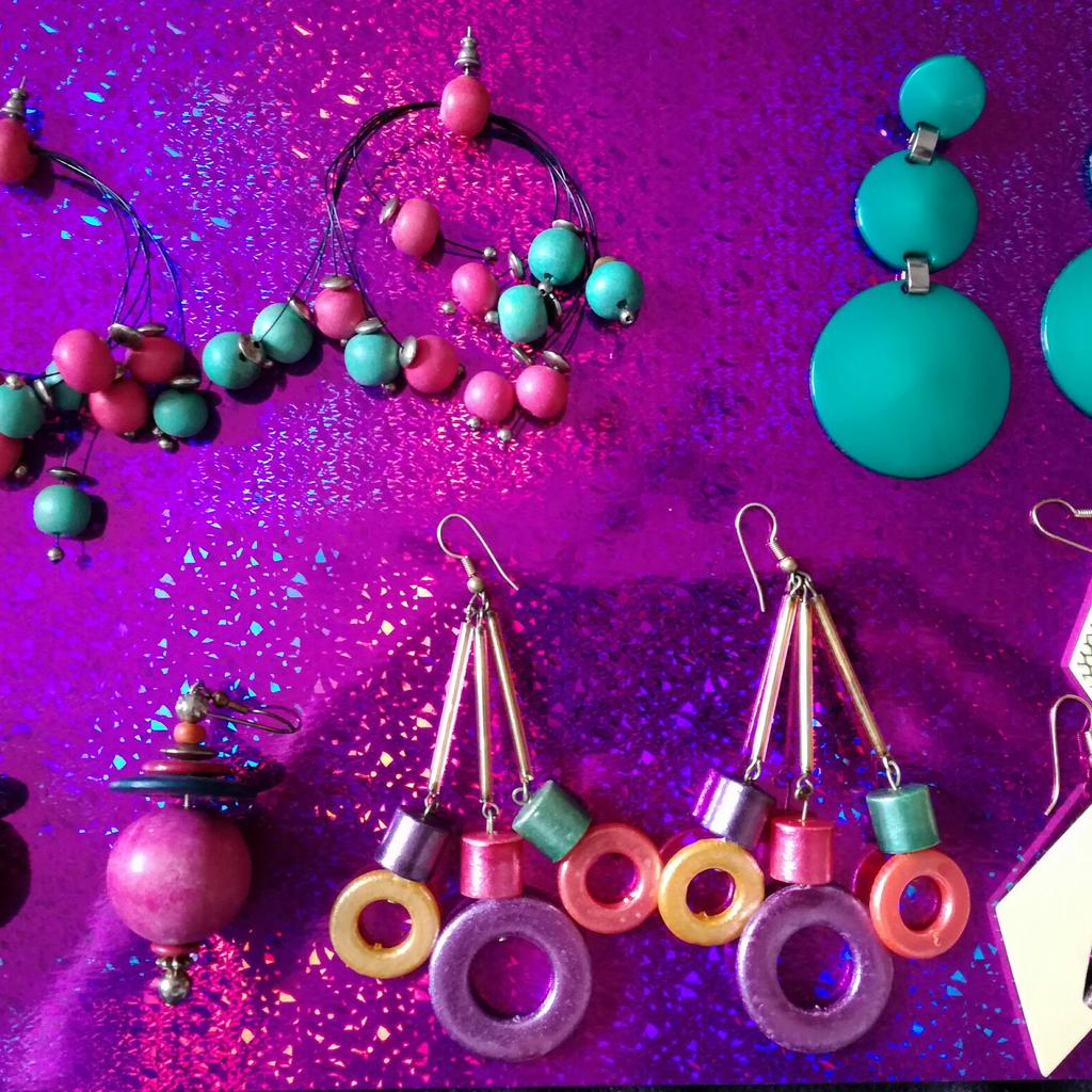 Aus hochwertigem Acryl gefertigt, sind die Ohrringe super leicht und angenehm zu tragen. Mit 5,4 x 5,4 cm sind sie auffällig genug für jede Party, aber nicht zu groß für den Alltag. Die Farben sind kräftig und verblassen nicht - das garantiere ich dir!