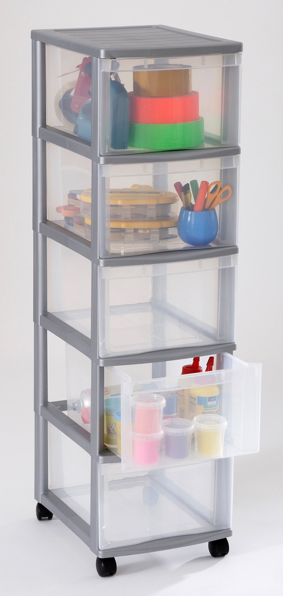 Dieser praktische Schubladenturm bringt Ordnung in dein Zuhause! Mit 4 transparenten Schüben aus Kunststoff (PP) - so siehst du sofort, was wo liegt. Perfekt für DIN A4 Ordner, Bürobedarf, Küchenutensilien oder Bastelsachen. Die großen Griffmulden machen das Öffnen super einfach. Mit 4 stabilen, 360° drehbaren Rollen - einfach an den gewünschten Platz schieben. Maße: 38,5x30x85,3cm (LxBxH). Das schwarze Gehäuse sieht schick aus und passt in jeden Raum. Hergestellt in Frankreich mit deutscher Gründlichkeit. Ob im Homeoffice, Kinderzimmer oder Bad - dieser Turm schafft Platz und Übersicht. Ein echter Alleskönner für mehr Ordnung im Alltag!