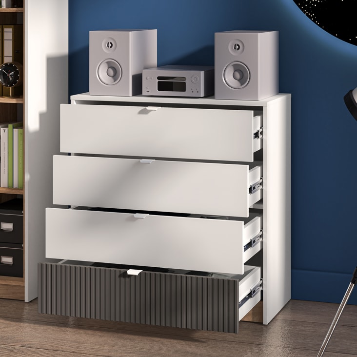 Platzsparender Stauraum war noch nie so stylisch! Diese UEV Kommode mit 4 Schubladen ist nur 60cm breit und passt damit auch in kleinste Ecken. Die Marmoroptik-Oberseite verleiht jedem Raum einen modernen Touch, und die weiße Farbe passt zu fast jedem Einrichtungsstil. Jede Schublade kann bis zu 10kg tragen - perfekt für Kleidung, Spielzeug, Kosmetik oder Haushaltsartikel. Aus hochwertigen MDF-Platten gefertigt, ist die Kommode stabil, kratzfest und leicht zu reinigen. Mit 93cm Höhe bietet sie viel Stauraum, ohne zu überladen. Perfekt für Wohnzimmer, Schlafzimmer, Flur oder Arbeitszimmer. Der Aufbau ist dank detaillierter Anleitung einfach - auch für Anfänger. Hol dir diese praktische Kommode und bring Ordnung in dein Zuhause - aber auf die schicke Art!