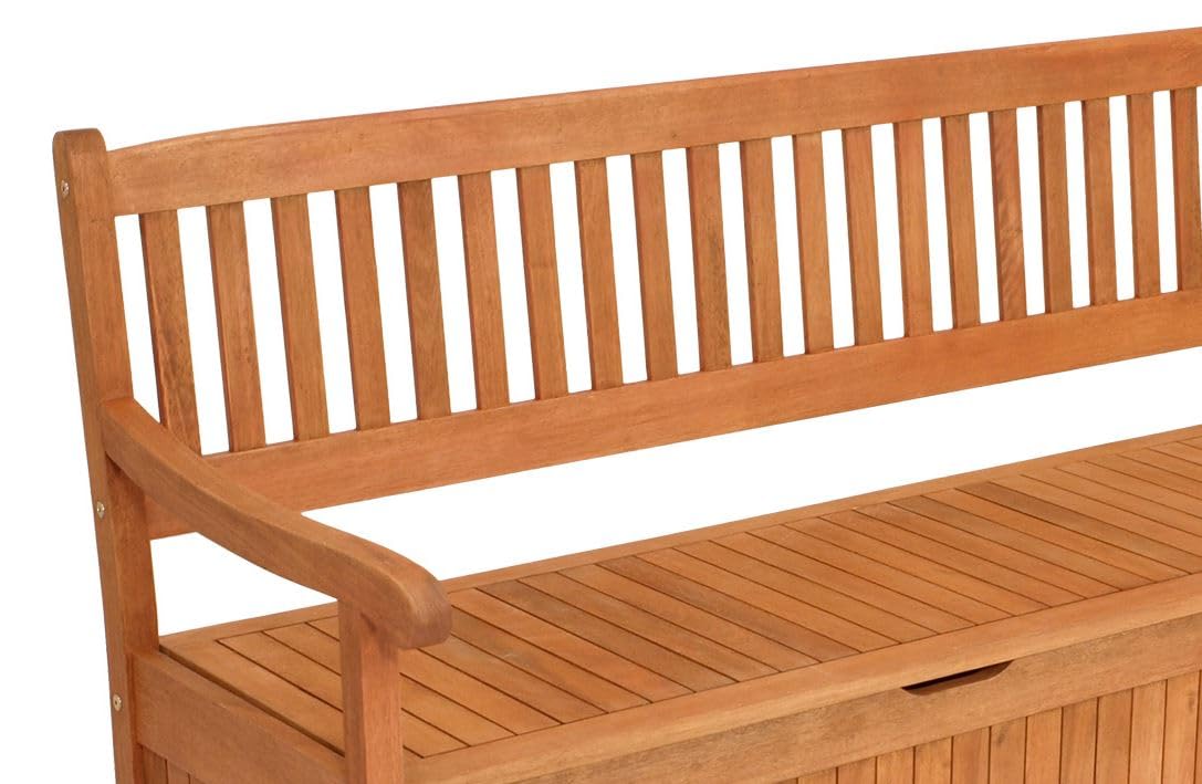 Gemütliche Sitzplätze mit Stauraum! Diese GREENA Gartenbank aus massivem Eukalyptusholz ist ein echter Allrounder für Garten und Terrasse. \\n\\nAls 4-Sitzer bietet sie Platz für die ganze Familie oder Gäste. Das integrierte Staufach unter der Sitzfläche ist super praktisch für: \\n- Gartengeräte \\n- Kissen und Decken \\n- Spielzeug \\n- Gartenschuhe \\n\\nEukalyptusholz ist besonders witterungsbeständig - perfekt für den Dauereinsatz im Freien. Die natürliche Maserung und die geölte Oberfläche verleihen einen rustikalen Charme. \\n\\nStabile Bauweise, aus kontrolliertem Anbau. Auch als 2-Sitzer oder 3-Sitzer erhältlich. \\n\\nEin echter Hingucker der Jahre hält - einfach aufstellen und entspannen!