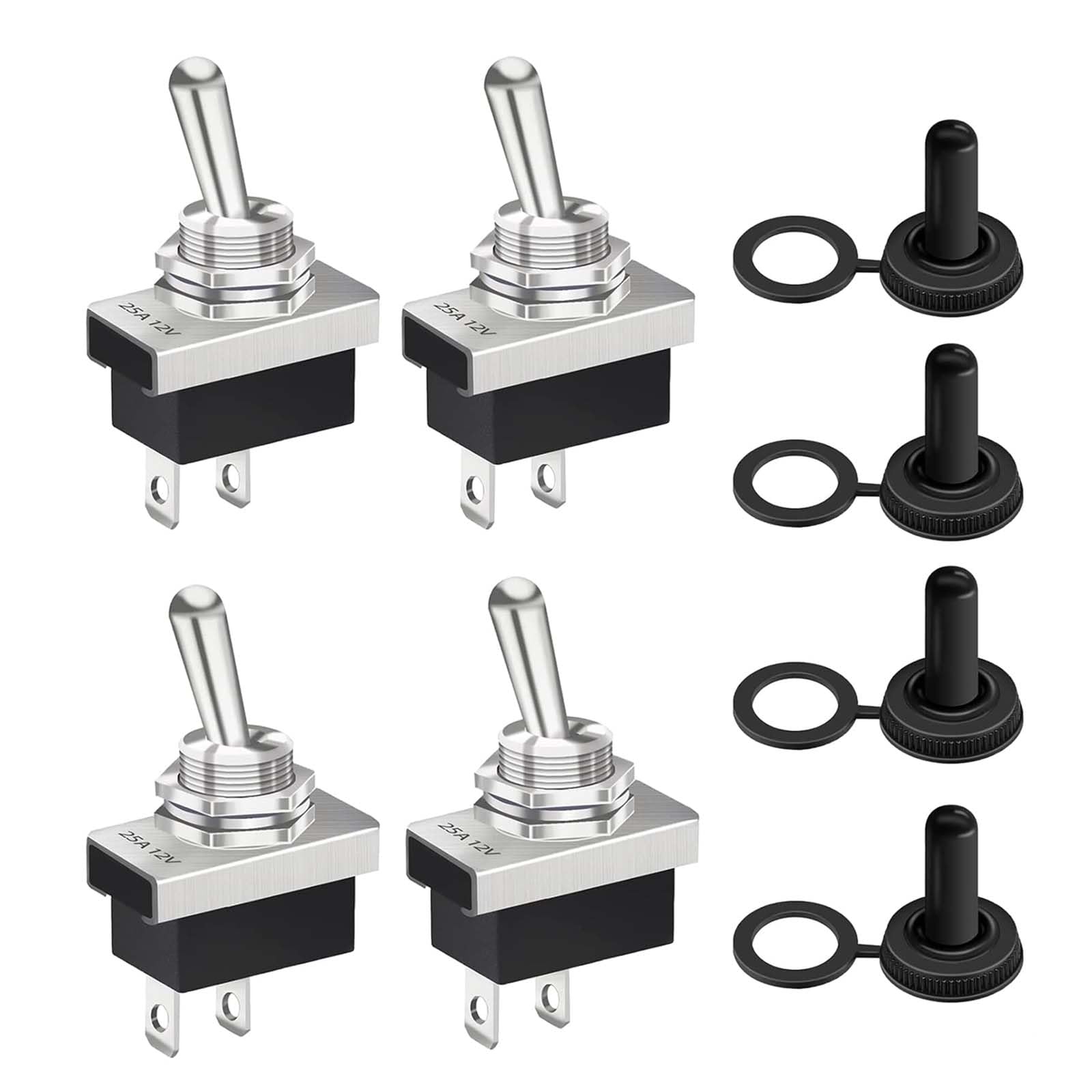 Perfekte Schalter für alle Nassbereiche! Diese 4 robusten Kippschalter sind komplett wasserdicht und halten auch bei Feuchtigkeit und Spritzwasser problemlos stand. Mit 25A bei 12V DC und sogar bis zu 250V AC geeignet - super vielseitig einsetzbar. Aus langlebigem Metall und Kunststoff gefertigt, mit praktischen Gummikappen für maximalen Schutz. Der Durchmesser der Befestigungslöcher beträgt 12mm, also super einfach zu montieren. Mit den Maßen 57x29x15mm sind sie kompakt aber trotzdem gut zu bedienen. Ideal für Auto, Boote, Marine-Anwendungen oder überall wo es mal nass werden kann. Die 2-poligen Anschlüsse sorgen für sichere Verbindungen. Im Set sind 4 Schalter plus 4 Ersatz-Gummikappen enthalten - so hast du immer Reserven parat. Endlich Schalter die wirklich dicht halten und lange zuverlässig funktionieren!