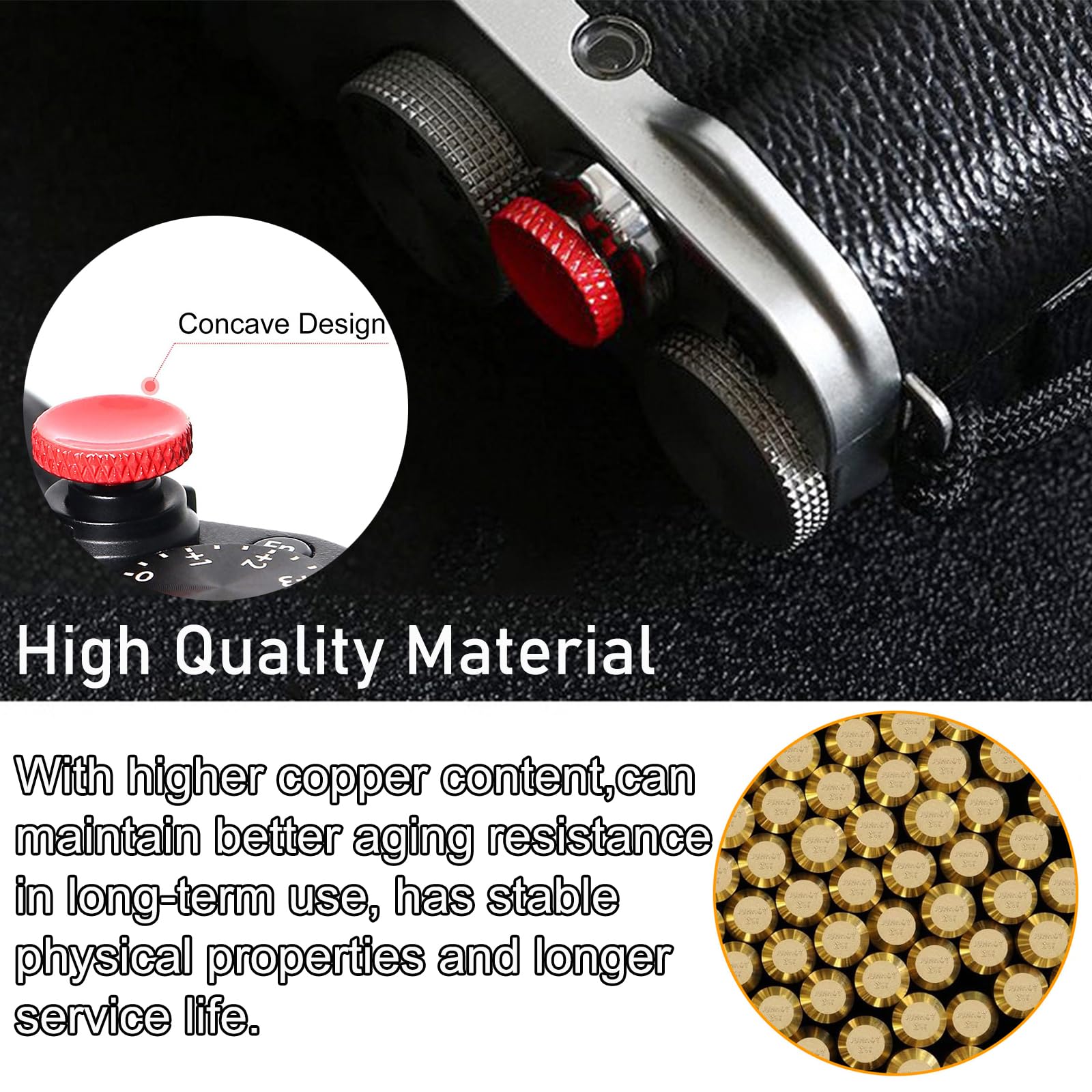 Fotografen, dies ist ein absolutes Upgrade für eure Kamera! Diese 4 Auslöseknöpfe aus reinem Kupfer machen nicht nur was her, sondern verbessern echt deine Fotografie!\n\nJeder Knopf hat 11,5mm Durchmesser und ist aus 100% Kupfer - das spürt man sofort! Die konkave, geriffelte Oberfläche liegt perfekt in der Hand. Du drückst viel präziser ab und reduzierst Verwacklungen - besonders bei langen Belichtungszeiten ein riesiger Vorteil!\n\nIm Set sind 4 Farben dabei: Rot, Gelb, Orange und Schwarz. Da kannst du je nach Kamera und Laune wechseln!\n\nDie Kompatibilität ist der Wahnsinn - passt zu:\n• Fujifilm: X-PRO1, X-T3, X-E2S, X-T10, X-T20, X-T30, X100S\n• Leica: M1 bis M9, M8, M Typ 240\n• Canon: F-1, AE-1\n• Nikon: Df, F3\n• Minolta, Olympus, Hasselblad\n\nMontage ist kinderleicht: Einfach den originalen Auslöser abschrauben, diesen draufdrehen - fertig! Der O-Ring sorgt für perfekten Halt.\n\nWas bringt's konkret?\n• Weniger Verwacklungen\n• Bequemeres Halten\n• Persönlicher Look\n• Professionelleres Feeling\n• Längere Standzeit durch bessere Ergonomie\n\nEgal ob Profi oder Hobbyfotograf - dieser kleine Knopf macht einen riesigen Unterschied! Deine Kamera fühlt sich wertiger an, und du machst bessere Fotos. Ein No-Brainer für jeden, der gerne fotografiert!\n\nProbier's aus - du wirst erstaunt sein, was so ein kleines Teil bewirken kann!