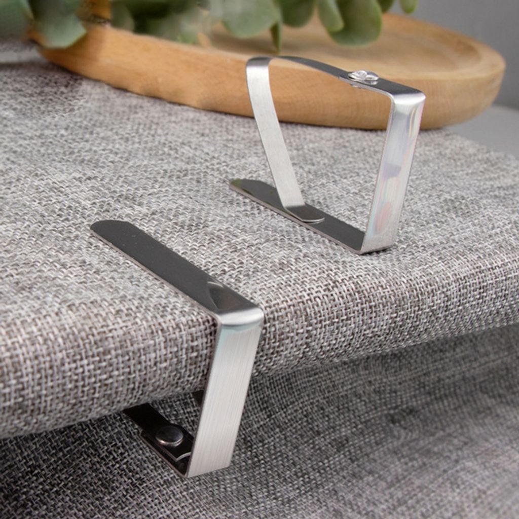 Schluss mit verrutschten Tischtüchern! Dieses 4-teilige Set von GEFU hält deine Tischdecke zuverlässig an Ort und Stelle. Die vernickelten Klammern sehen nicht nur edel aus - sie sind auch super praktisch. Die integrierte Pufferfeder sorgt für den perfekten Halt auf Tischplatten von 19-45 mm Stärke. Perfekt für Ausziehtische! Einfach die Klammern an den Ecken befestigen und schon bleibt alles dort, wo es hingehört. Auch bei festlichen Anlässen mit viel Bewegung am Tisch. Die Verarbeitung ist typisch GEFU: Hochwertig und langlebig. Achtung: Von offenen Flammen fernhalten und nach Gebrauch reinigen. So hast du lange Freude an den Klammern! Praktisch für Restaurant, Café oder Zuhause - wo immer du Wert auf einen perfekt gedeckten Tisch legst. Einfach, aber effektiv - so muss das sein!