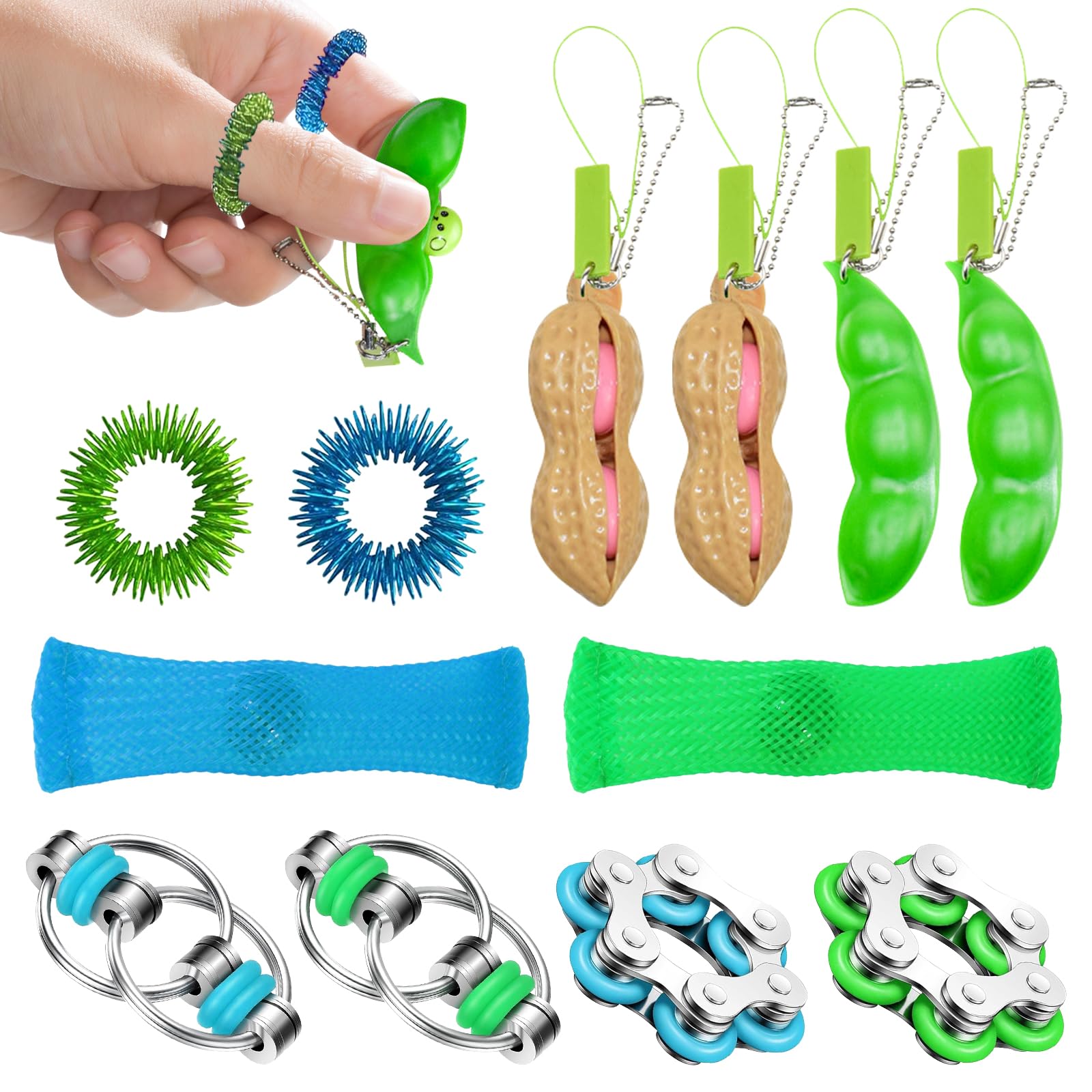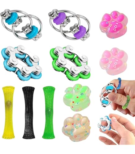 Hast du auch manchmal das Bedürfnis, mit den Fingern zu spielen? Unsere Fidget Toys sind genau das Richtige für unruhige Hände!\n\nIm Set bekommst du 4 verschiedene Toys in den Farben Blau, Grün, Lila und Rotgold. Jedes misst 3,15 Zoll x 0,9 Zoll - passt also super in die Handtasche oder Jackentasche.\n\nWarum sie so gut tun:\n• Reduzieren Stress und Nervosität\n• Verbessern die Konzentration\n• Besonders hilfreich bei ADHS\n• Beruhigende taktile Erfahrung\n\nHergestellt sind sie aus hochwertigem Seiden-PLA Material mittels 3D-Druck. Die Rollenformen und kleinen Plastikspitzen fühlen sich angenehm an und fördern die Fingerbeweglichkeit.\n\nPerfekt für:\n• Büro und Homeoffice\n• Schule und Studium\n• Wartezeiten\n• Stressige Situationen\n• Als emotionale Unterstützung\n\nEin tolles Geschenk für alle, die etwas Entspannung im Alltag brauchen oder einfach gerne mit den Händen spielen!