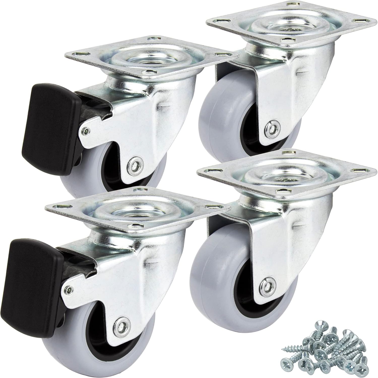 Beweglichkeit war noch nie so einfach! Diese 4 robusten Lenkrollen mit je 50mm Durchmesser machen aus jedem Möbelstück einen mobilen Begleiter. Mit Doppelbremse ausgestattet - die blockiert sowohl das Rad als auch die Drehfunktion für maximalen Halt. Aus hochwertigem TPR-Material, das Böden nicht zerkratzt und super leise läuft. Jede Rolle trägt stolze 50kg, das Set also insgesamt 200kg! Perfekt für Möbel, Werkstattwagen, Strandkörbe oder Umzugskisten. Das 360-Grad-Schwenkgelenk gibt volle Bewegungsfreiheit in alle Richtungen. Im Lieferumfang ist alles dabei, was du zur Montage brauchst: Schrauben, Muttern, Unterlegscheiben und sogar ein Schraubendreher! Einfach montieren und schon rollt's - ob in der Werkstatt, Garage oder im Wohnzimmer.