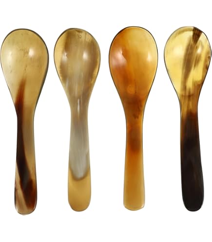 Stylish und natürlich! Diese 4 Hornlöffel aus Ochsenhorn und Perlmutt sind perfekt für besondere Anlässe. Ideal für Kaviar, da sie den Geschmack nicht beeinflussen. Aber auch super für Kaffee, Dessert, Joghurt oder Eis. Jeder Löffel 16,5cm lang mit einzigartiger Maserung - jedes Stück ein Unikat. Leicht und angenehm in der Hand. Perfekt für Dinnerpartys oder als besonderes Geschenk. Bringt natürliche Eleganz auf deinen Tisch!