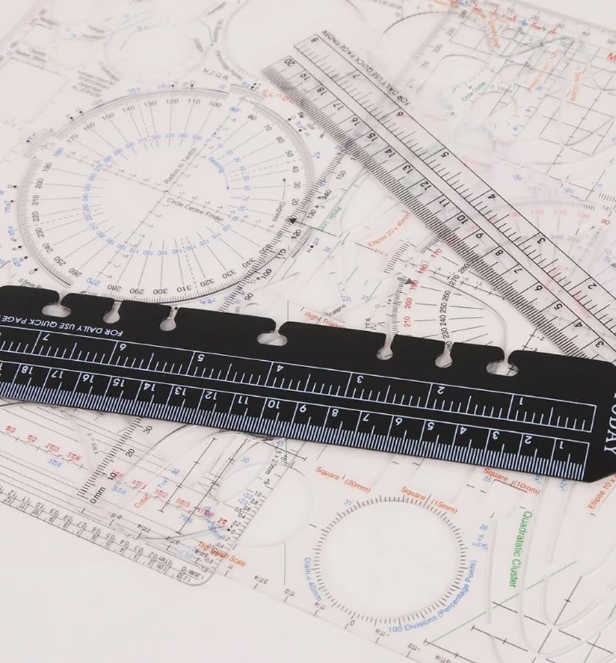 Organisation meets Funktionalität! Dieses 4-teilige Set aus A5 Lineal-Lesezeichen hilft dir, dein Notizbuch perfekt zu organisieren. Zwei schwarze und zwei transparente Lineale im A5-Format (22x4,5cm) passen perfekt in 6-Loch-Binder. Nicht nur als Lineal verwendbar, sondern auch als Seitenmarker - so findest du schnell zur aktuellen Seite zurück. Die durchsichtigen Lineale lassen deine Notizen durchscheiben, die schwarzen bieten guten Kontrast. Einfach in die Ringmechanik einsetzen und schon hast du immer ein Lineal griffbereit. Perfekt für Schüler, Studenten, Büro oder kreative Projekte. Das Set macht auch ein tolles Geschenk für organisierte Menschen. Wichtig: Vor dem Kauf prüfen, ob der Lochabstand zu deinem Notizbuch passt. Mit diesen praktischen Helfern wird dein Notizbuch zur Wohlfühloase für Ideen und Notizen!