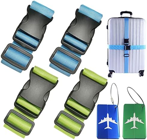 Nie wieder Gepäck verwechseln! Dieses bunte Set mit 4 verstellbaren Koffergurten (95-200 cm Länge, 5 cm Breite) und 4 blauen Gepäckanhängern macht deine Reise stressfreier. Aus robustem Nylon gefertigt - reißfest und langlebig. Die Sicherheitsschnallen öffnen und schließen sich blitzschnell. Die knalligen Regenbogenfarben helfen dir, dein Gepäck auf dem Fließband sofort zu erkennen. Perfekt für Koffer, Reisetaschen, Rucksäcke oder Trolleys. Ein super praktisches Geschenk für Reisende, Camper oder Pendler. Mit den Anhängern kannst du deine Kontaktdaten hinterlassen - falls mal was verloren geht.