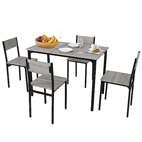 Perfekt für gemütliche Essen mit Familie und Freunden! Dieses Esszimmer-Set besteht aus einem Tisch und vier passenden Stühlen in modernem Weiß-Grau-Design. Der Tisch aus Kiefernholz misst 108 cm Länge, 65 cm Breite und 73 cm Höhe - ideal für 4-6 Personen. Die Stühle (39x45x85cm) sind bequem und stabil. Kommt flach verpackt zur einfachen Selbstmontage - keine Sorge, die Anleitung ist verständlich! Das lackierte Kiefernholz ist robust und pflegeleicht. Schafft eine gemütliche Atmosphäre in deinem Esszimmer. Perfekt für kleine Wohnungen oder als Gästetisch. Macht in jedem Raum eine gute Figur! Farbe: Weiß und Grau. Material: Kiefernholz lackiert. Tischmaße: 108x65x73cm. Stuhlmaße: 39x45x85cm. Lieferumfang: 1x Tisch, 4x Stühle.