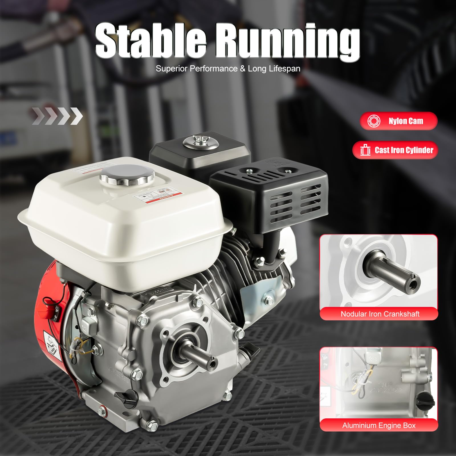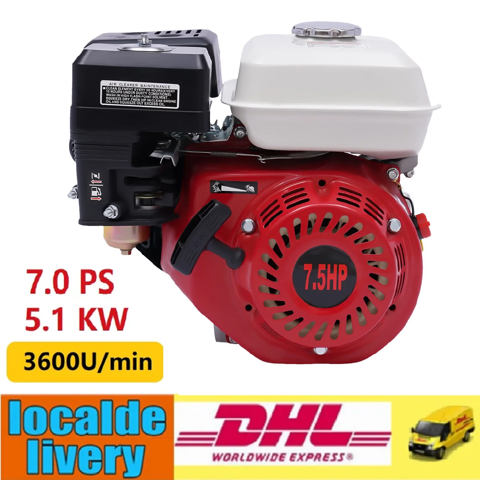 Dieser 7.5 PS Benzinmotor ist ein echtes Kraftpaket! Mit 212cc Hubraum und 3600 U/min bringt er alles in Bewegung - ob Go Karts, landwirtschaftliche Geräte oder Baumaschinen. Der 4-Takt Motor läuft super leise (nur 75dB) und sparsam. Aluminium-Gehäuse mit Kühlrippen verhindert Überhitzung. 3.6 Liter Benzintank für lange Laufzeiten. Einfach zu warten und robust verarbeitet. Perfekt für Heimwerker, Bauern oder Hobby-Bastler. Ein Allrounder, auf den du dich verlassen kannst! • 7.5 PS • 212cc • 4-Takt • 3600 U/min • 3.6L Tank • Aluminium Gehäuse