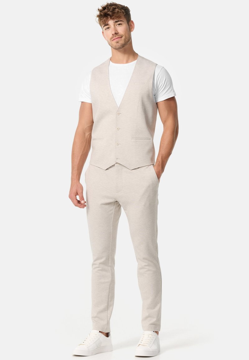 Siehst du aus wie aus dem Ei gepellt! Diese JEFF Anzugweste kombiniert klassische Eleganz mit modernem Komfort. Aus Ponti Roma mit 4-Wege-Stretch (78% Polyester, 18% Viskose, 4% Elasthan) - atmungsaktiv, knitterfrei und super angenehm zu tragen. Schmale Passform mit tiefem V-Ausschnitt für zeitlose Silhouette. Mit durchgehender Knopfleiste, Leistentaschen und stylischem floralem Innenfutter. Regular Fit - unser Model ist 1,86m und trägt Größe 50. Perfekt für Business-Anlässe, Hochzeiten oder um den Casual-Look aufzuwerten. Einfach anziehen und wirken - diese Weste macht jeden Mann zum Gentleman!