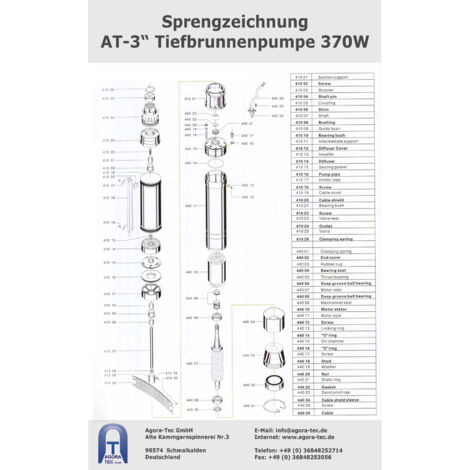 Agora-Tec 4 Zoll Brunnenpumpe PREMIUM 370W - Sandresistent Bis 90m Förderhöhe
