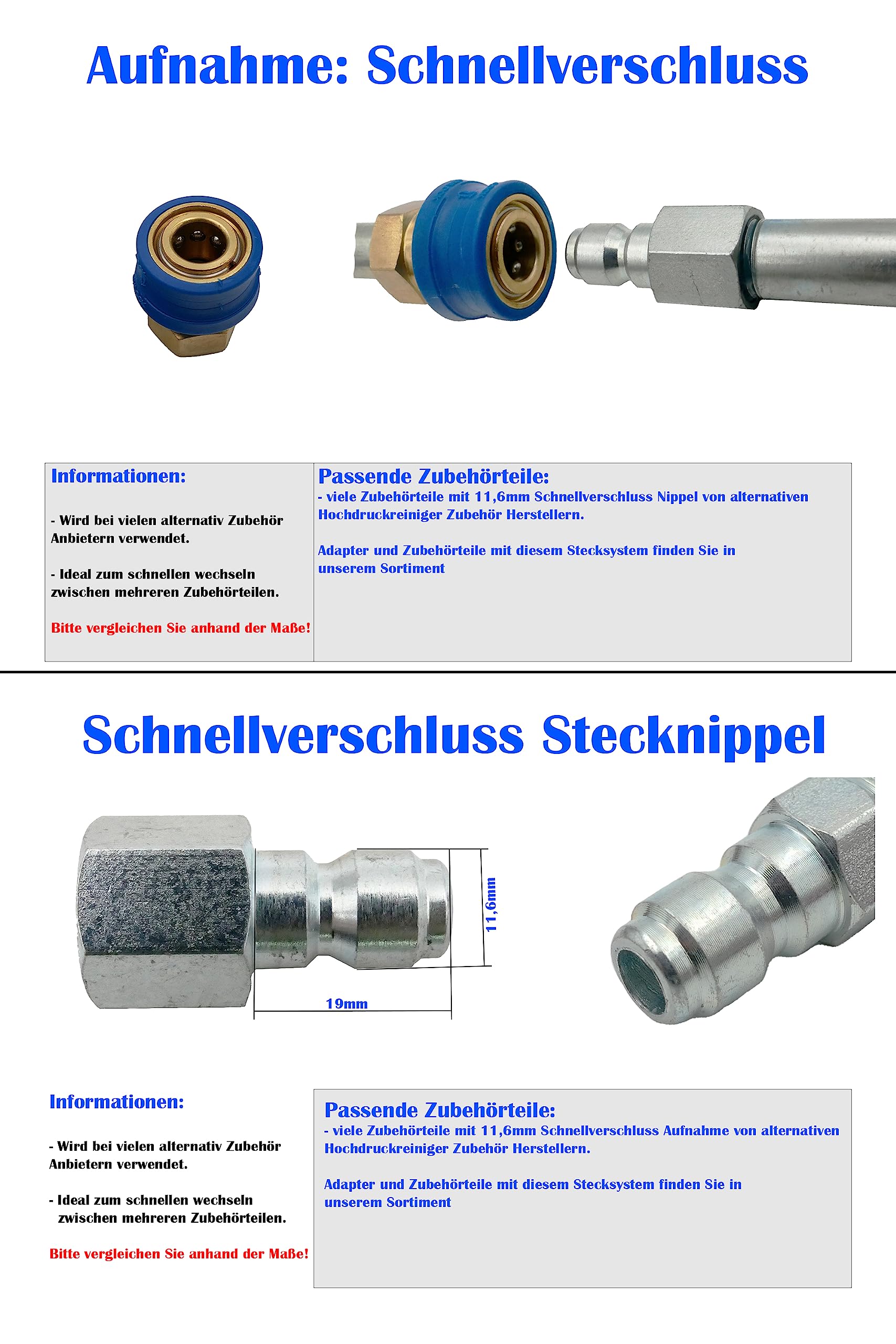 Boah, dieser Hochdruckreiniger-Adapter ist ja mal richtig praktisch! Aus robustem Edelstahl gefertigt - hält auch hohem Druck problemlos stand. Mit 1/4 Zoll Schnellanschluss perfekt kompatibel für NILFISK Hochdruckreiniger und viele andere Marken. Im Set sind gleich 5 verschiedene Düsen dabei - da findest du für jede Reinigungsaufgabe die passende! Einfach draufstecken, ohne Werkzeug - in Sekunden montiert und ready to go. Optimiert den Wasserfluss und Druck für maximale Reinigungskraft - selbst hartnäckiger Schmutz hat keine Chance. Super kompakt und leicht - passt in jede Werkzeugtasche für unterwegs. Ob für die Auto-Wäsche, Terrasse oder Hausfassade - mit diesem Adapter machst du alles blitzblank. Die Edelstahl-Qualität ist echt top, rostfrei und langlebig. Einfach ein Must-have für jeden, der seinen Hochdruckreiniger optimal nutzen will!