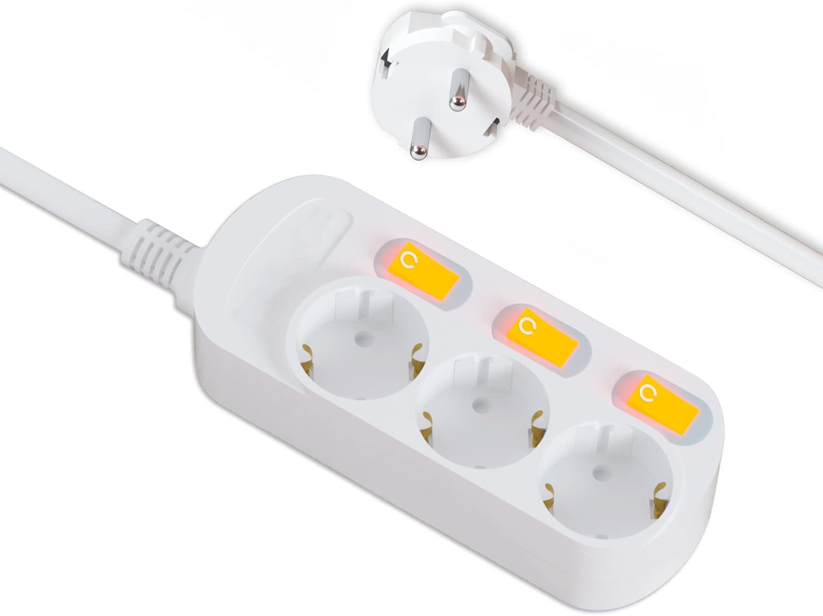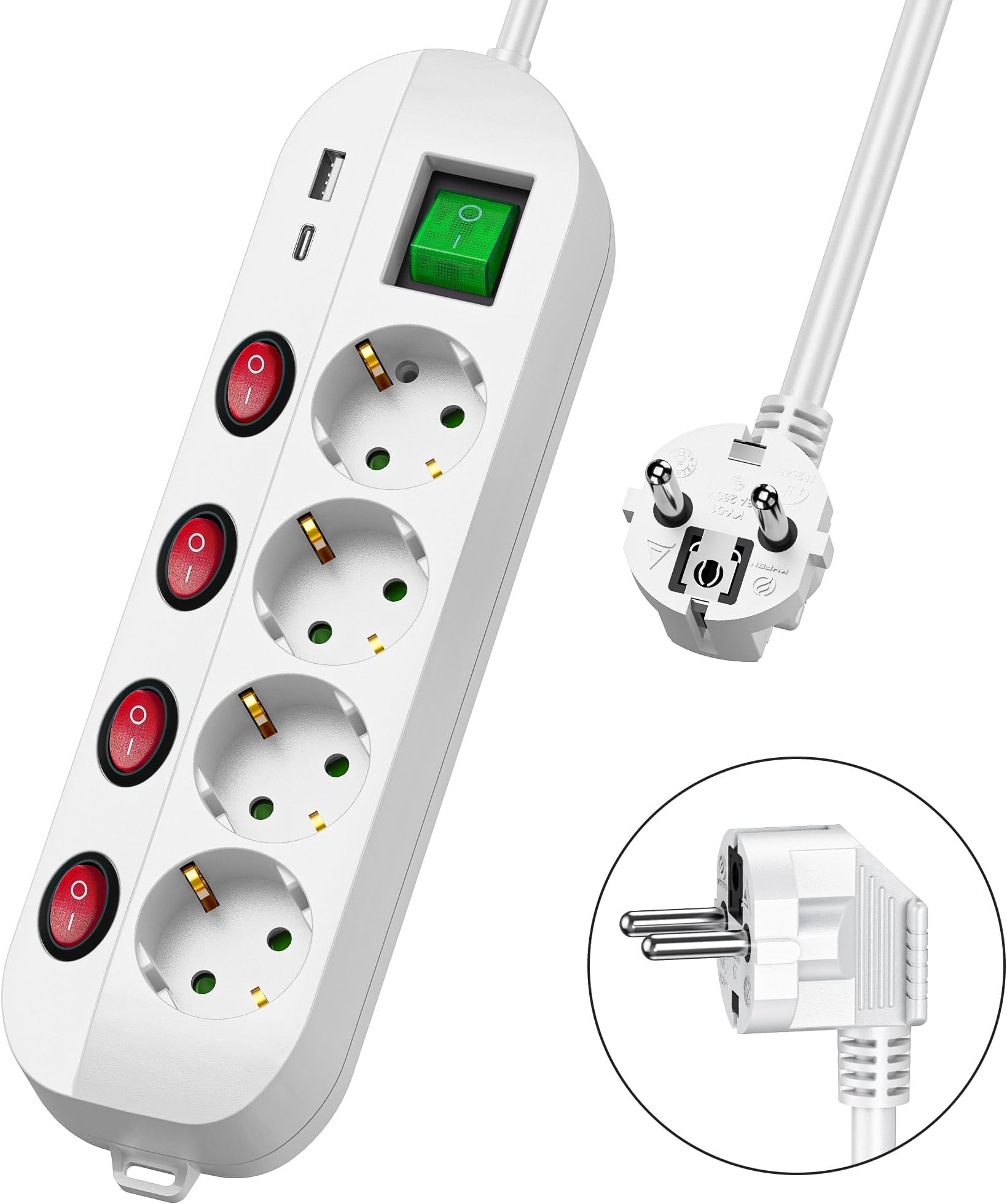 Endlich ordnung am schreibtisch oder in der werkstatt! Diese 4-fach-steckdosenleiste hat für jede steckdose einen eigenen schalter mit LED-anzeige. So kannst du geräte komplett vom strom trennen und stand-by-strom sparen. Mit kindersicherung - also perfekt für haushalte mit kindern. Das 2m lange kabel gibt dir genug spielraum für die positionierung. Überspannungsschutz schützt deine geräte vor spannungsspitzen. Maximal 3680W / 16A - also genug power für computer, monitor, lampen und andere geräte. Die rückseite hat aufhängelöcher für wand- oder tischmontage. Aus feuerfestem material für maximale sicherheit. Mach schluss mit kabelchaos und schütze deine geräte - diese steckdosenleiste ist ein echter alltagshelfer!