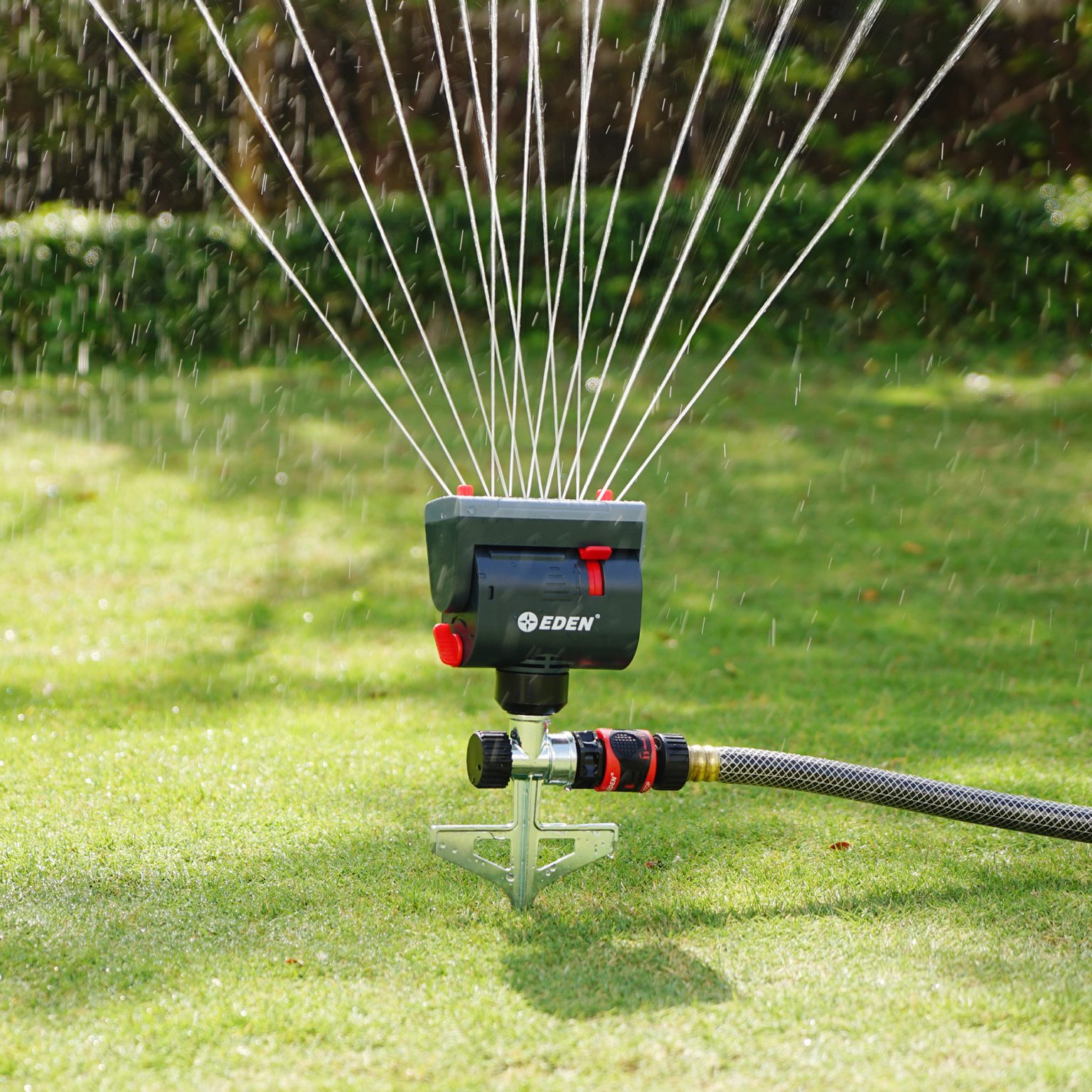 Hey, wenn du nen richtig guten Rasen willst, brauchst du nen vernünftigen Sprinkler - und der hier von Eden ist absolut top! Der Mini-Turbo-Sprinkler mit Stufenspike bewässert bis zu 4069 Quadratmeter - das ist ne verdammt große Fläche! Du kannst alles einstellen: Breite, Länge, Wasserfluss und sogar den 360-Grad Winkel. So triffst du genau die Stellen, die Wasser brauchen - und verschwendest kein Nass. Perfekt für schmale Beete zwischen Gehwegen oder große Rasenflächen. Der Turboantriebsmotor sorgt für gleichmäßige Leistung, egal ob bei niedrigem oder hohem Wasserdruck. Der Spike aus Zink rostet nicht und steht stabil im Boden - selbst in sandigem Untergrund. Noch n Plus: Du kannst mehrere Sprinkler zusammenschließen für noch mehr Abdeckung. Mit dem Quick Connect System schraubst du den Schlauch blitzschnell an und ab. Einfach in den Boden stecken, Wasser aufdrehen - und zack, dein Rasen kriegt die Dusse, die er verdient. So macht Gießen Spaß und dein Garten wird der Neid der Nachbarschaft!