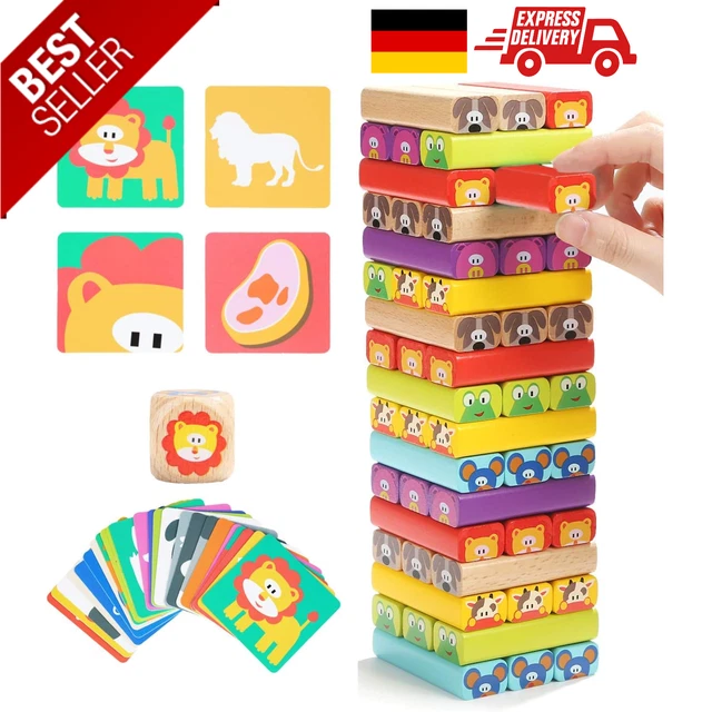 4 Spiele in einem - endloser Spielspaß für die ganze Familie! Dieser kreative Wackelturm bietet: klassischen Turmbau mit Würfel, spannendes Raten und Ziehen, freies Bauen und Dominoketten. Hergestellt aus natürlichem Massivholz mit ungiftigen, wasserbasierten Farben und abgerundeten Kanten. Fördert spielerisch Kreativität, logisches Denken, Feinmotorik, Farberkennung und Problemlösungsfähigkeiten. Entspricht europäischen Sicherheitsstandards und ist robust für jahrelangen Spielspaß. Perfekt für Kinder von 3-9 Jahren - drinnen und draußen!